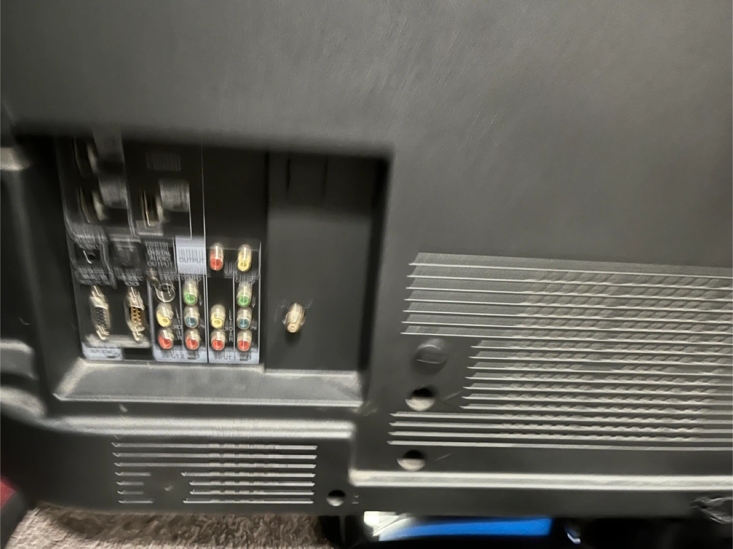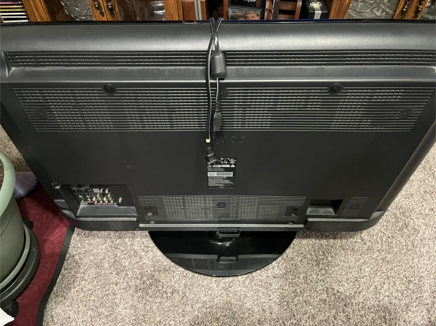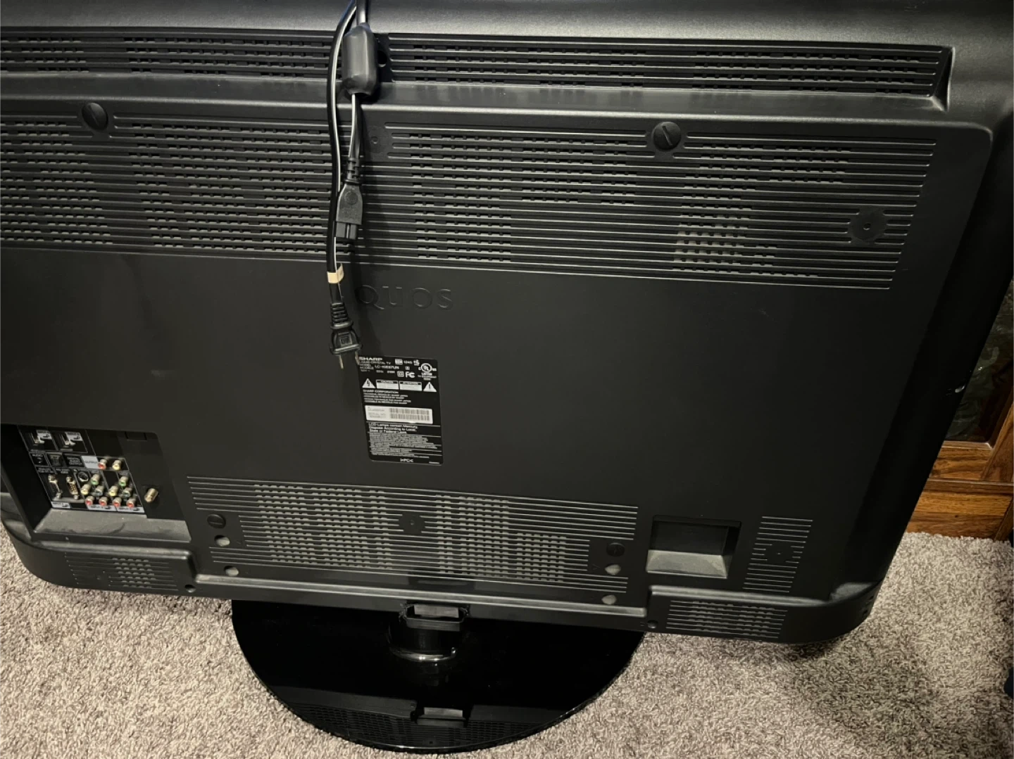 This is a Sharp Aquos flat-screen television. It features multiple input ports for various devices. Comes with power cord.