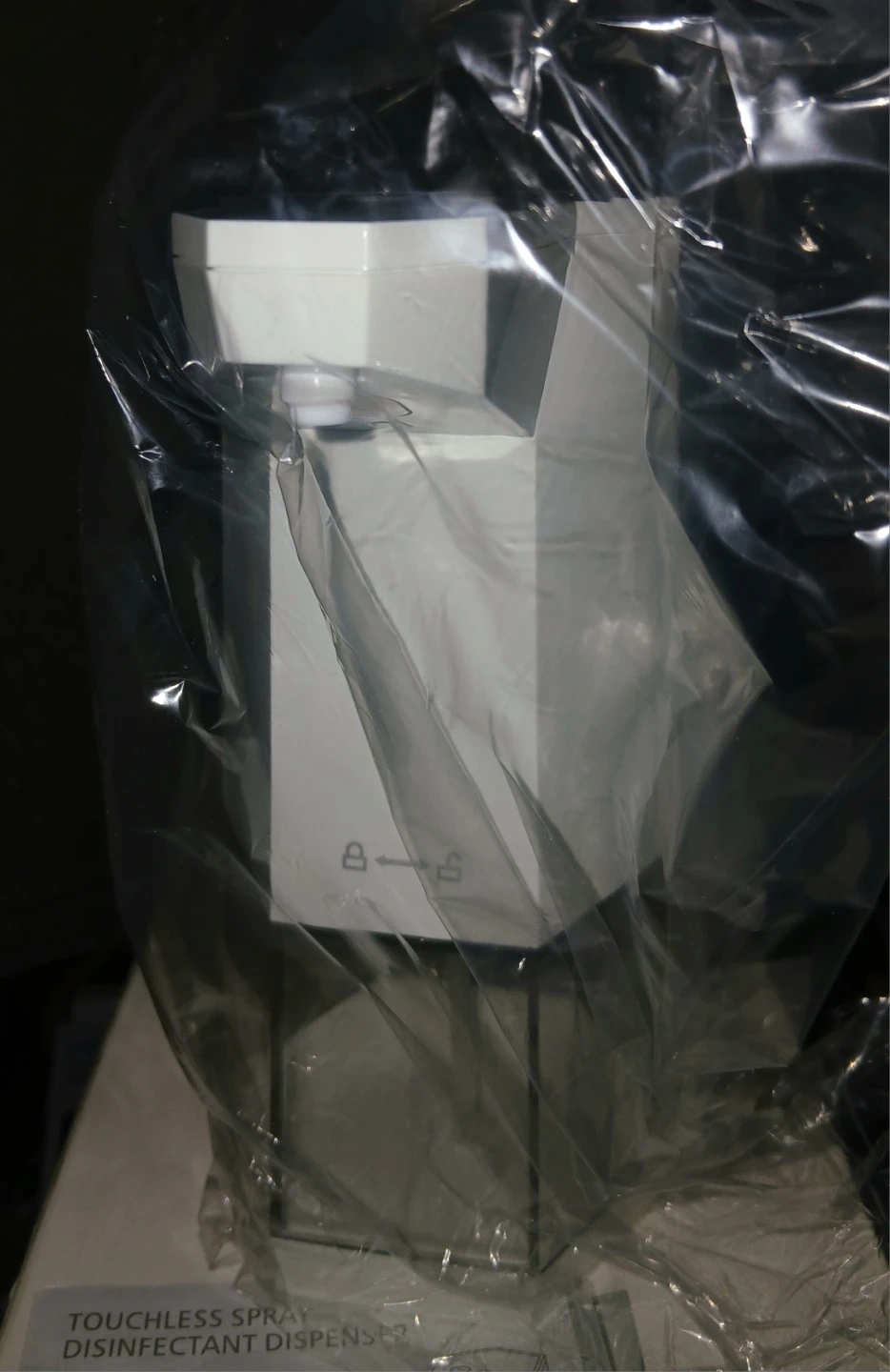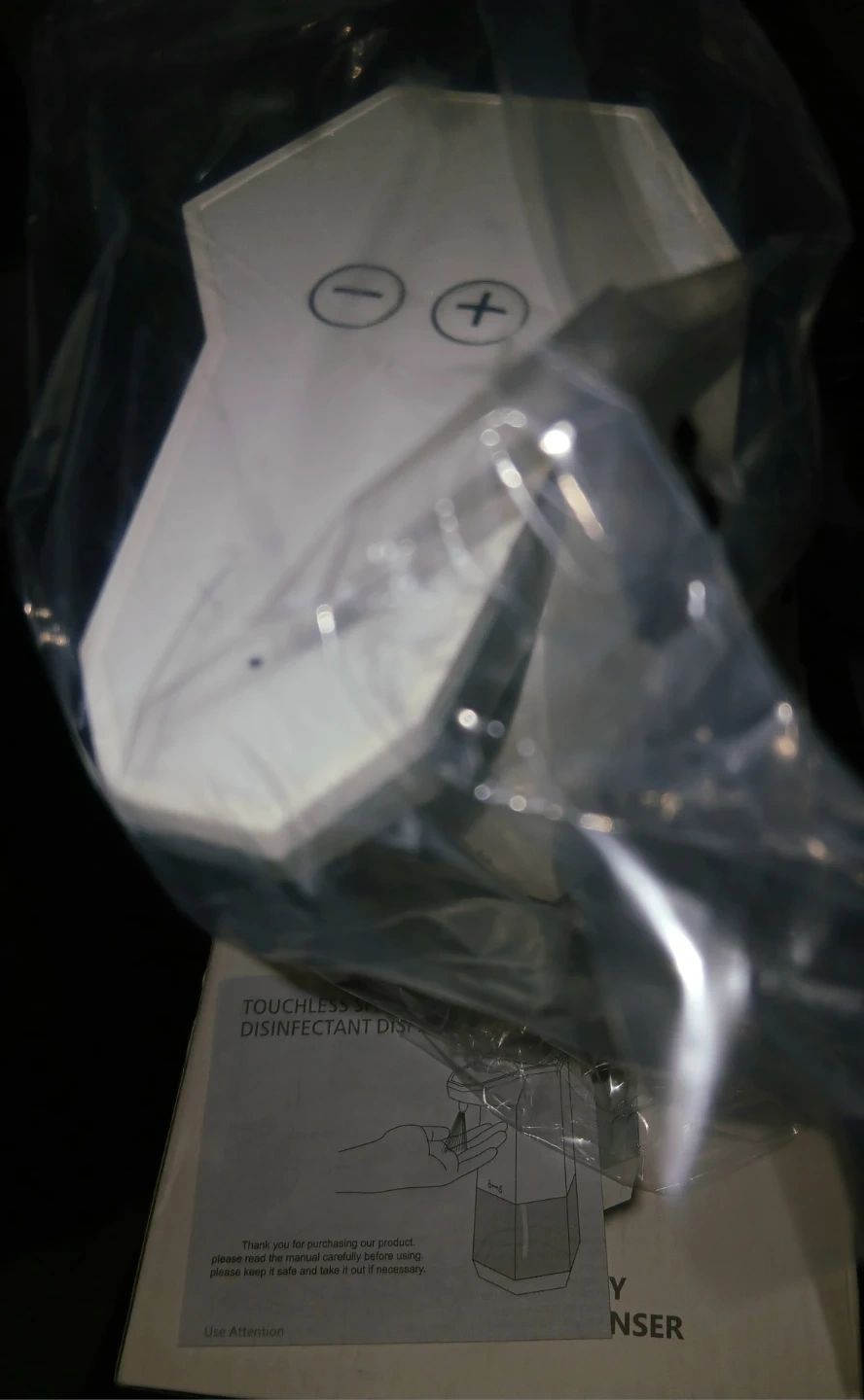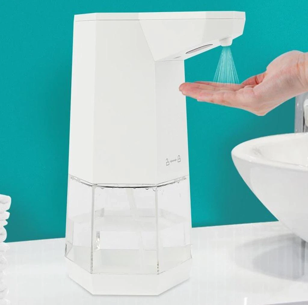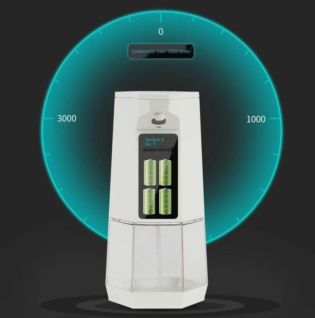 Infrared smart sensor touchless spray disinfectant dispenser. Uses 4 AA alkaline batteries.