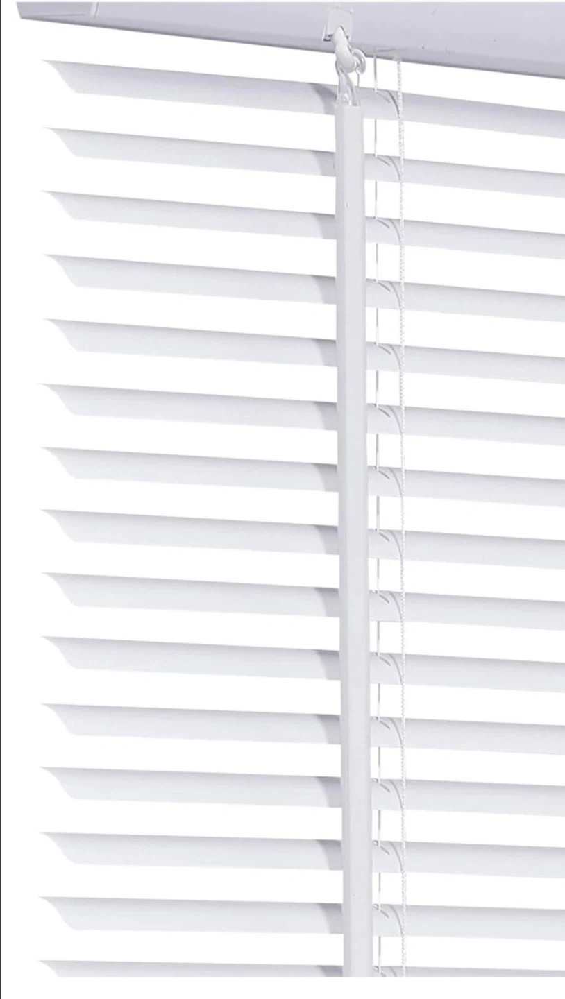 White 1" cordless mini blind. Size is 30 inches by 64 inches. Includes original box. This blind is useful for light control and privacy in any room.
