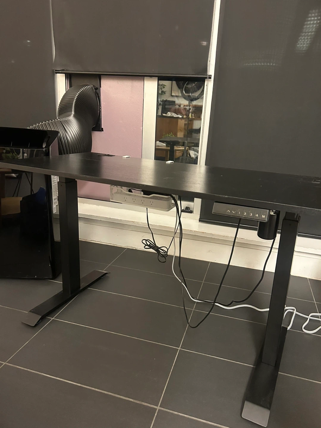 Selling a black adjustable standing desk in great condition! It's perfect for setting up a home office or upgrading your current workspace. It's sturdy and reliable, and the adjustable height makes it super versatile for different users and tasks.