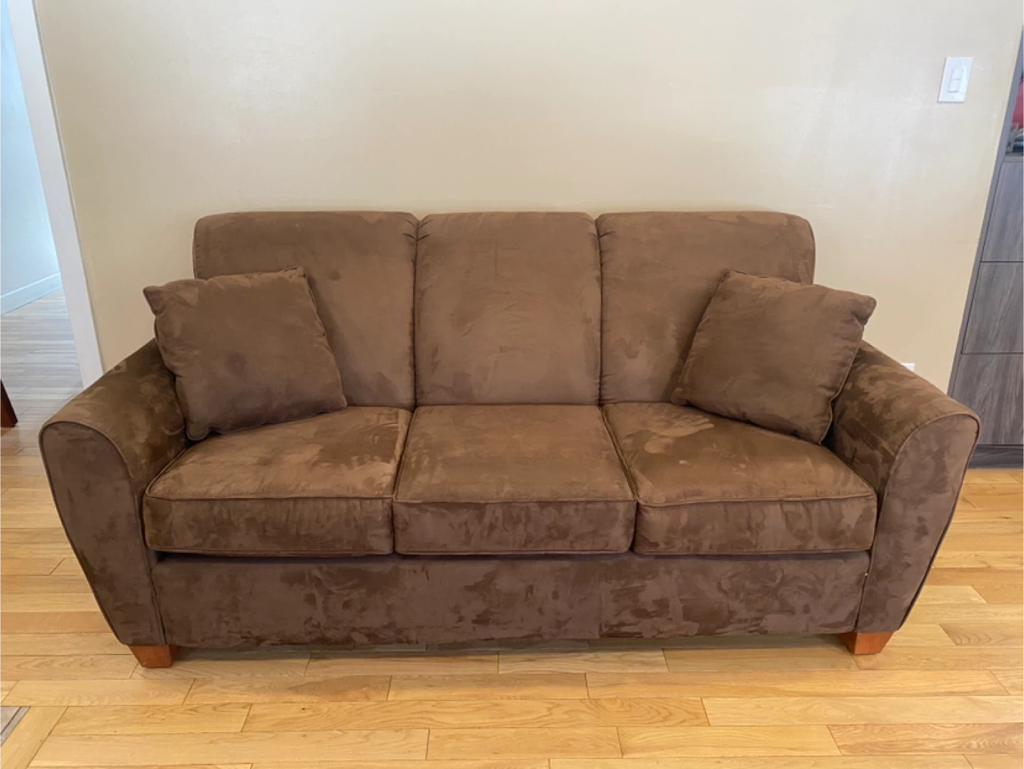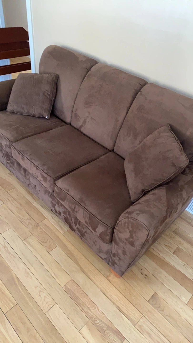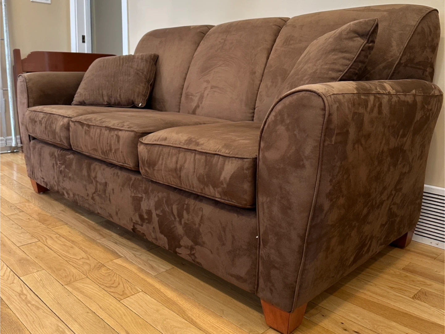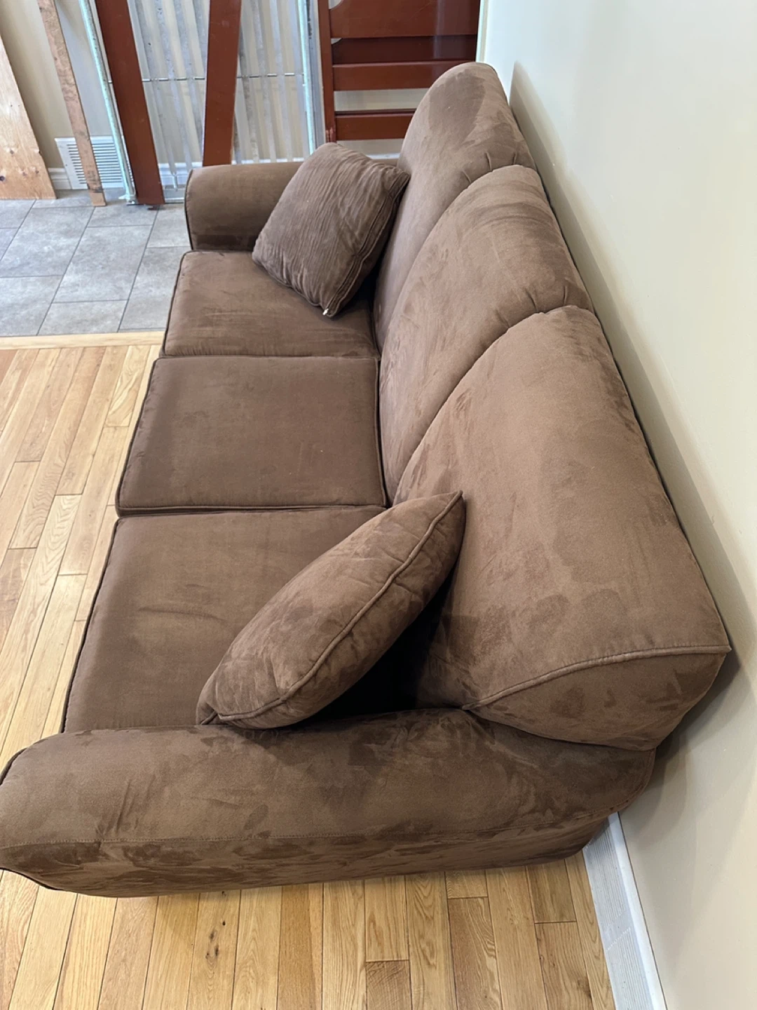 Like New Modern Brown Microsuede Sofa (CAN DELIVER