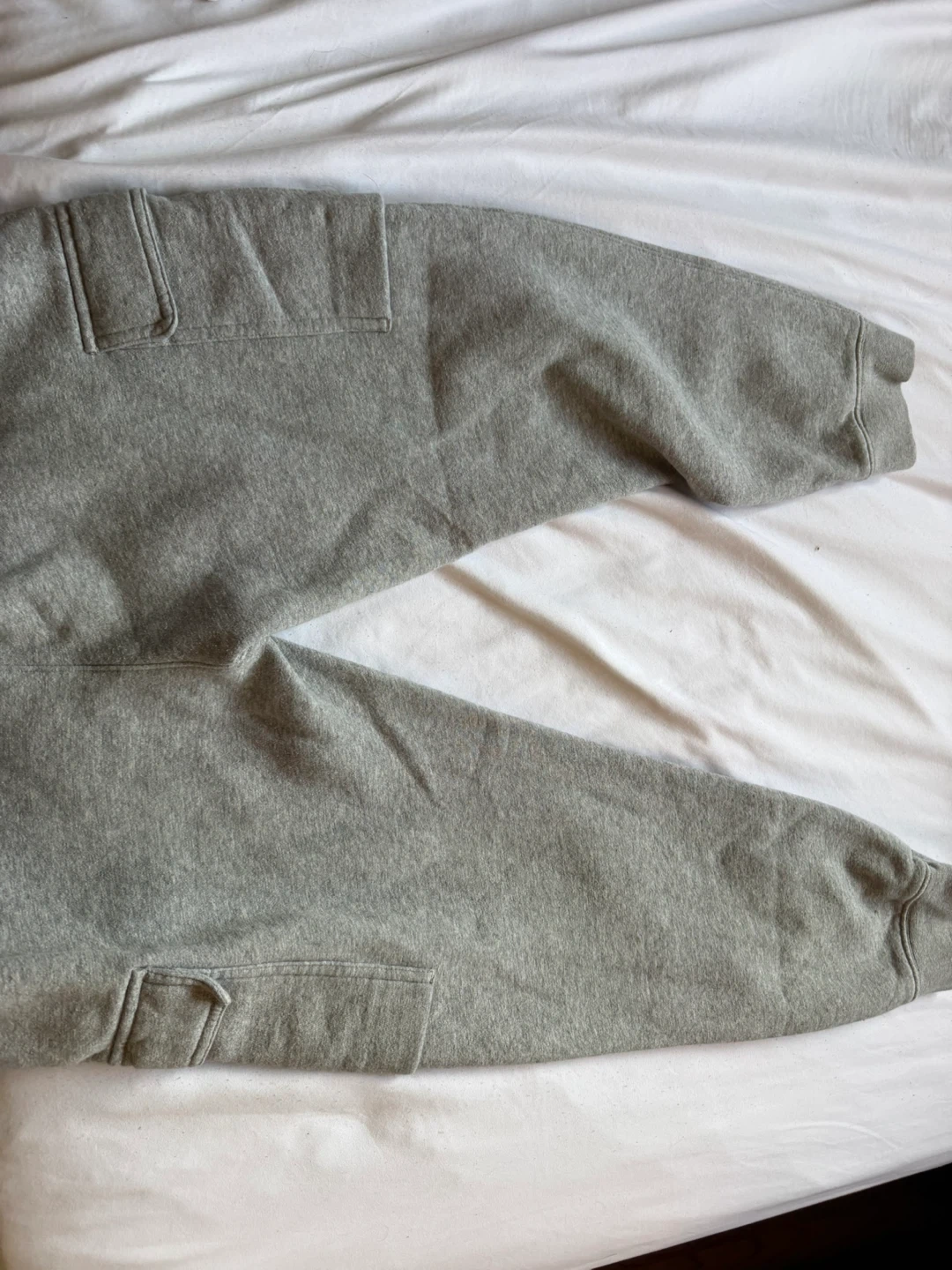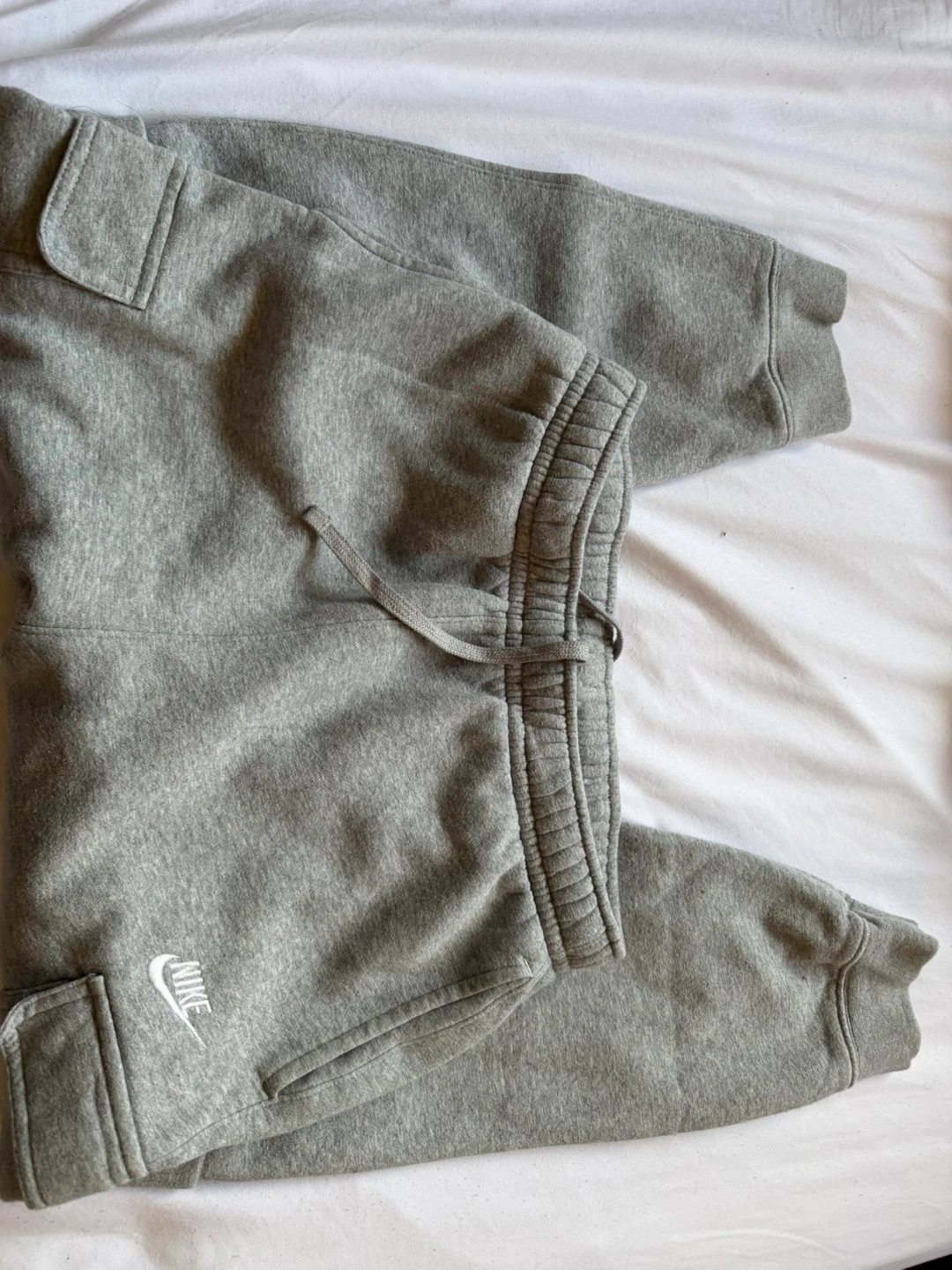 Comfy grey Nike sweatpants with cargo pockets. Made of soft fabric for all-day wear. Perfect for casual outings or lounging at home!