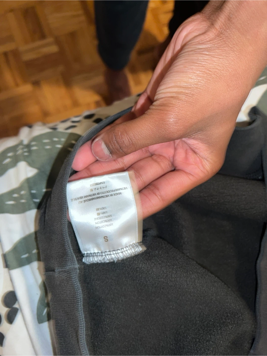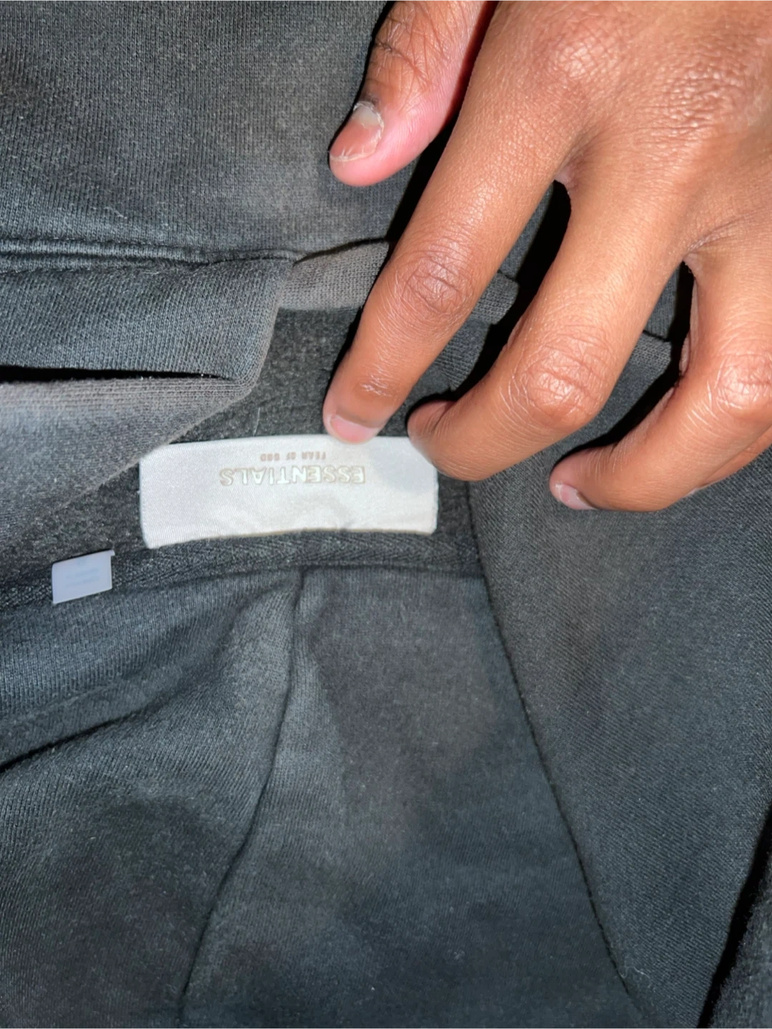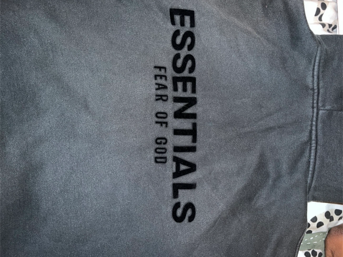 This is a grey Essentials Fear of God hoodie. It's a size small and made of 100% cotton. This hoodie is great for everyday wear.