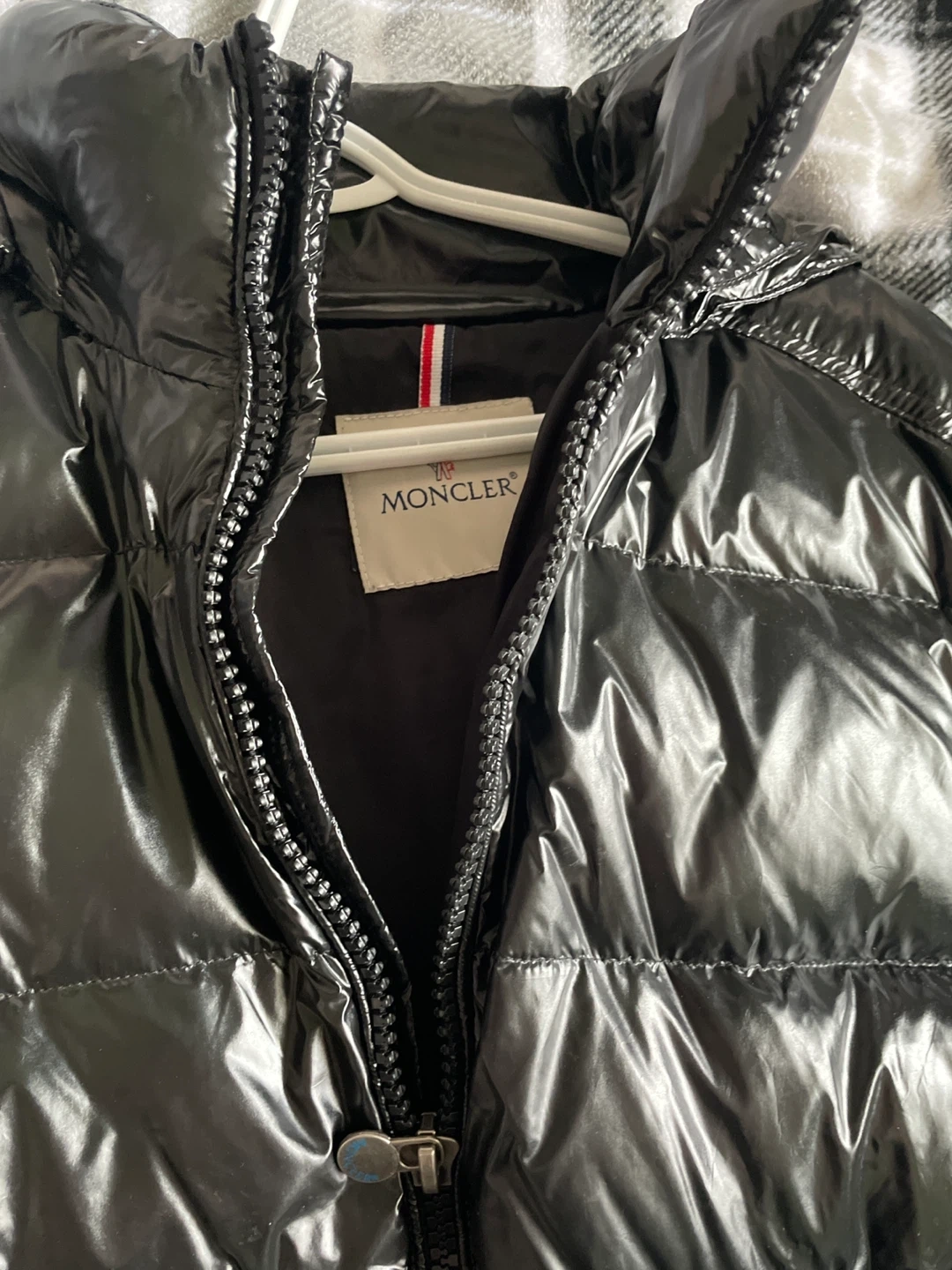 Here's a Moncler puffer jacket in black! It's in great condition and ready to keep you warm this winter