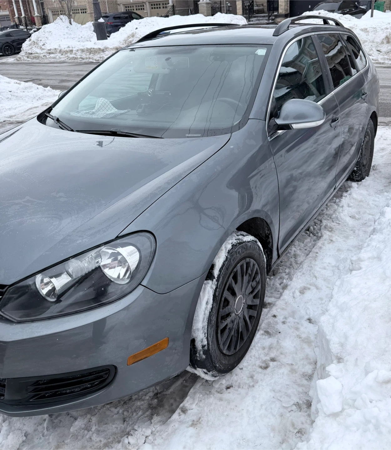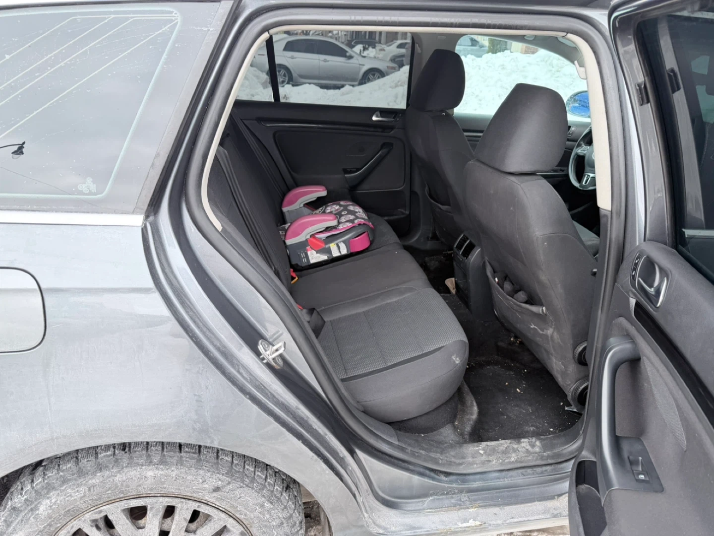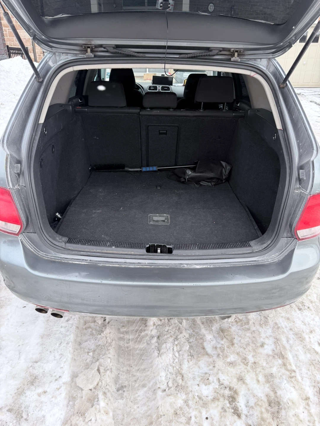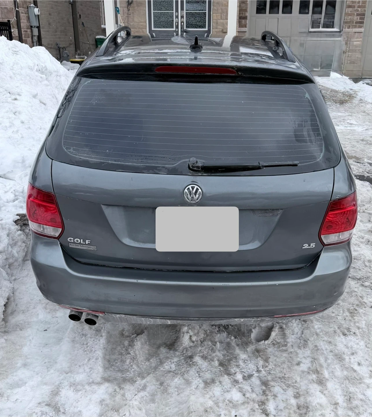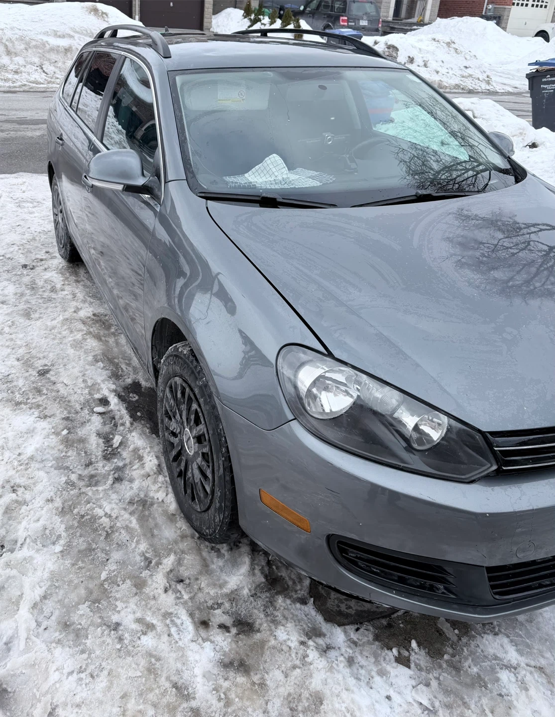 Grey Volkswagen Golf wagon. It's a 2.5 model with a spacious cargo area. This car offers great utility for hauling gear or groceries.