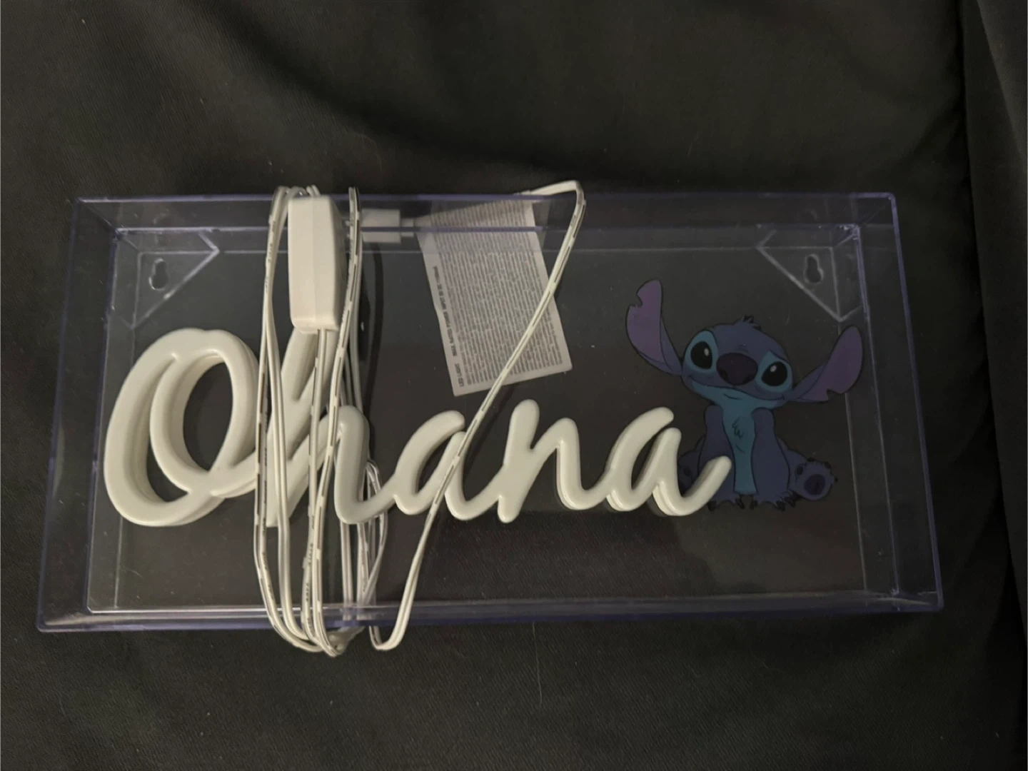 Add a touch of Disney magic with this fun "Ohana" LED light featuring Stitch! It plugs in for easy use and is perfect for any fan's room. The bright white lettering and character graphic make it a cheerful addition to your decor.