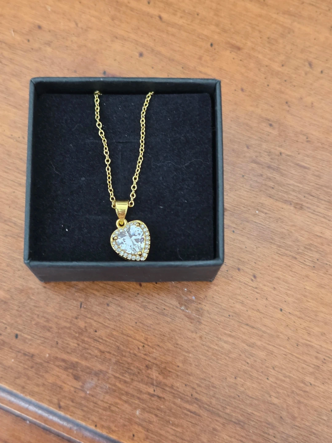 This necklace features a heart-shaped pendant encrusted with small stones and set on a delicate chain. The pendant is stamped S925, indicating sterling silver. It comes in a black gift box.
