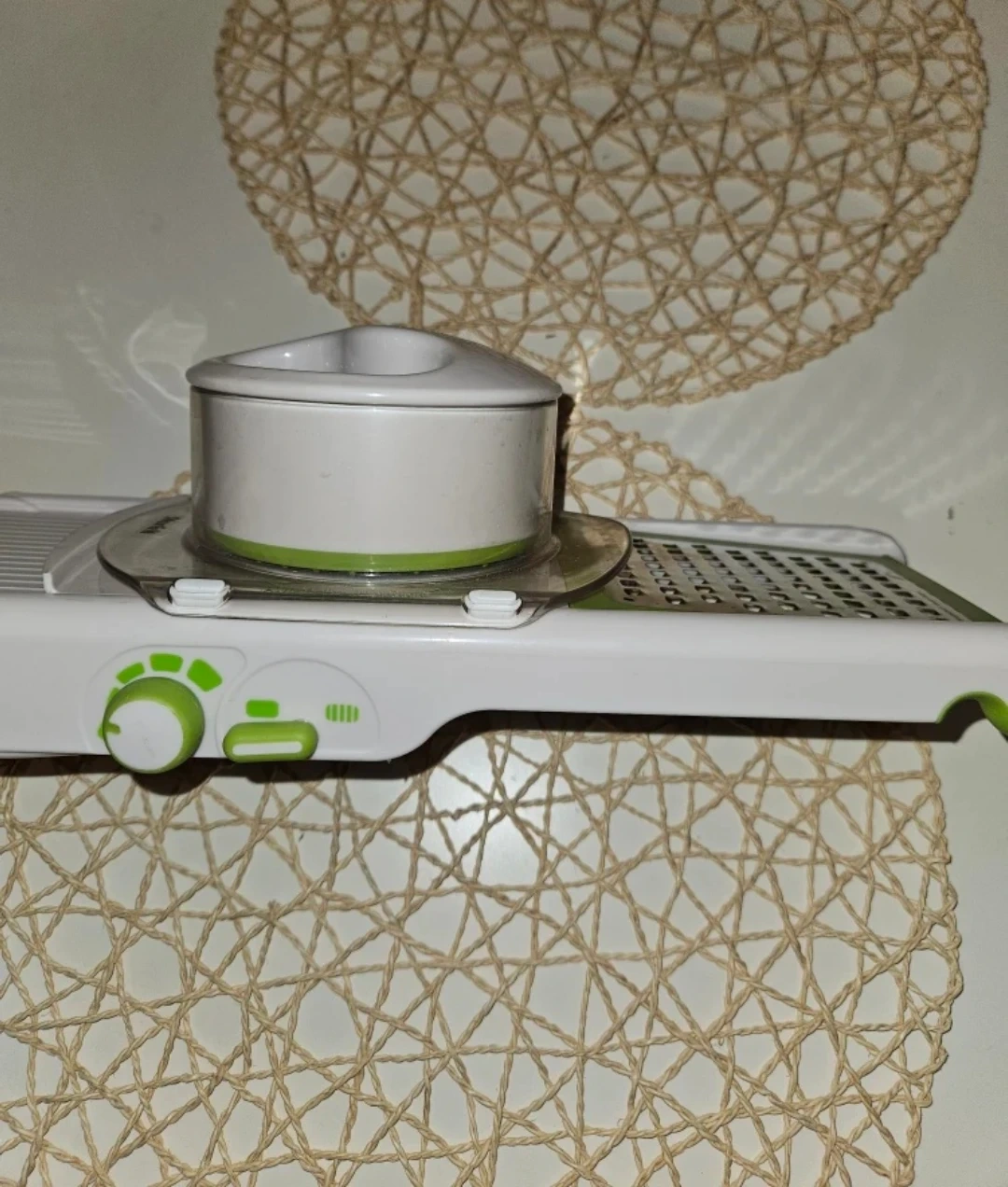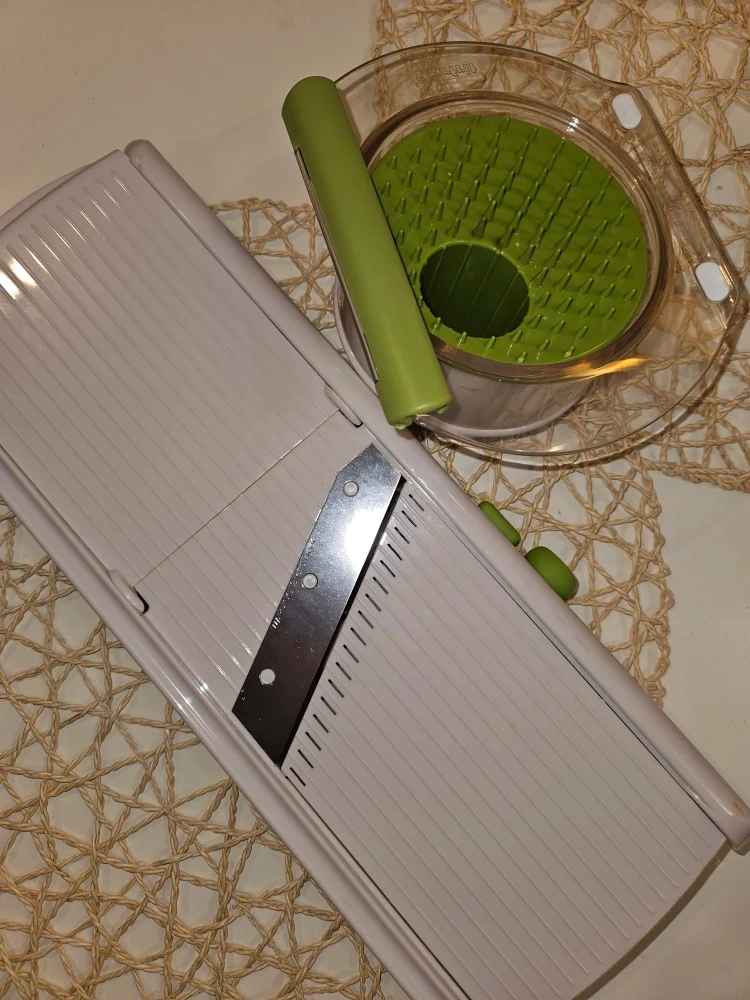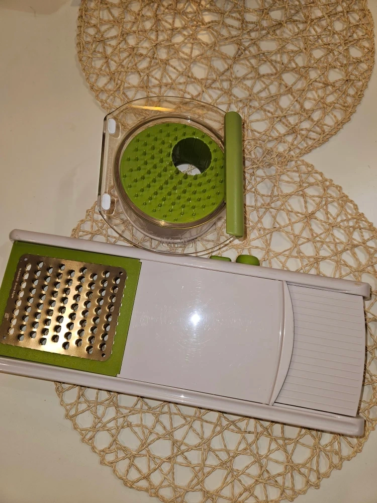 I'm selling a new mandoline slicer. It's in great shape and ready to help you prep your veggies with ease! It comes with all the attachments you see in the pictures.