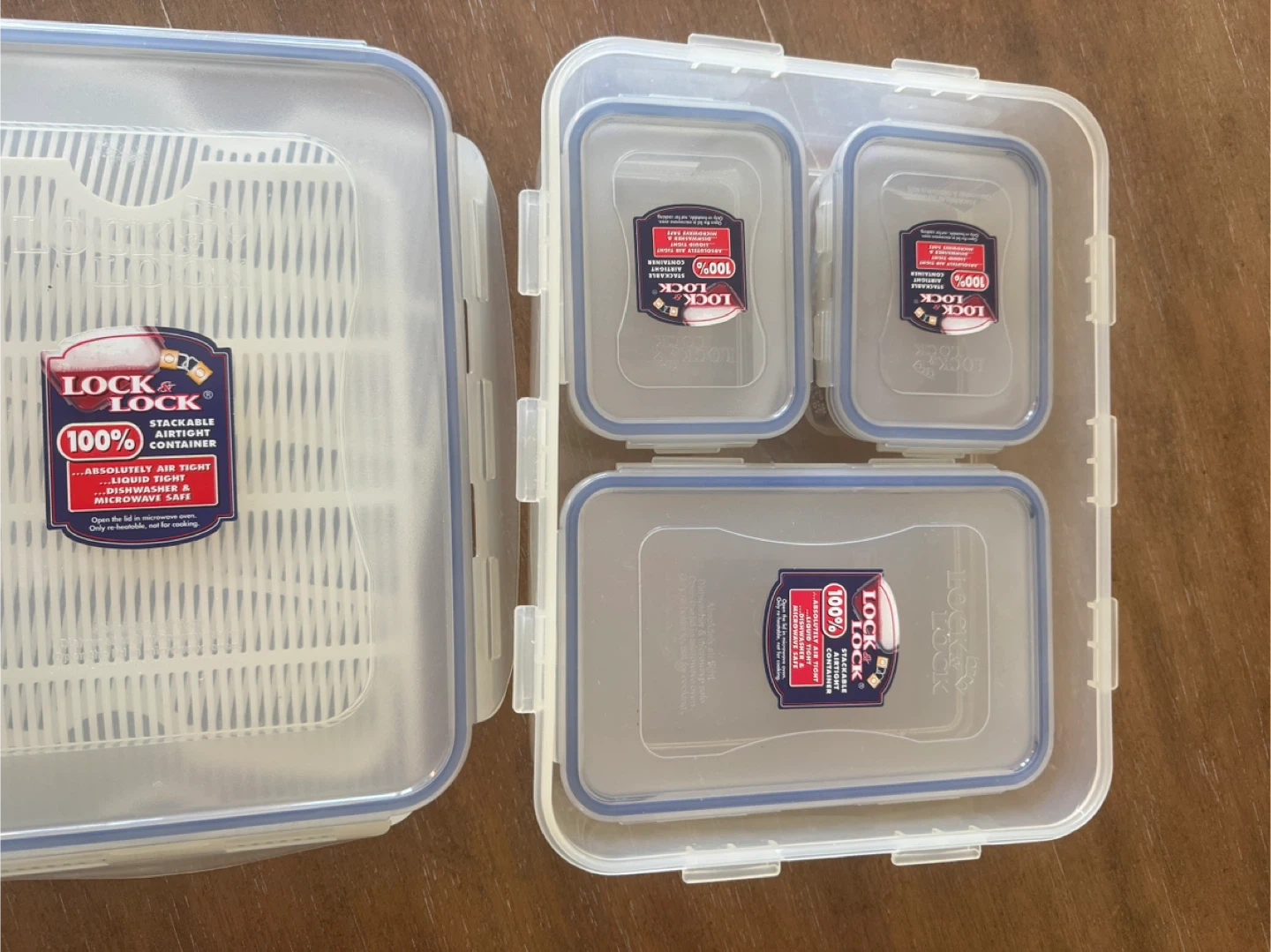 This set includes multiple stackable, air-tight food storage containers. They're dishwasher and microwave safe for convenience. Use them to keep leftovers fresh or organize your fridge!
