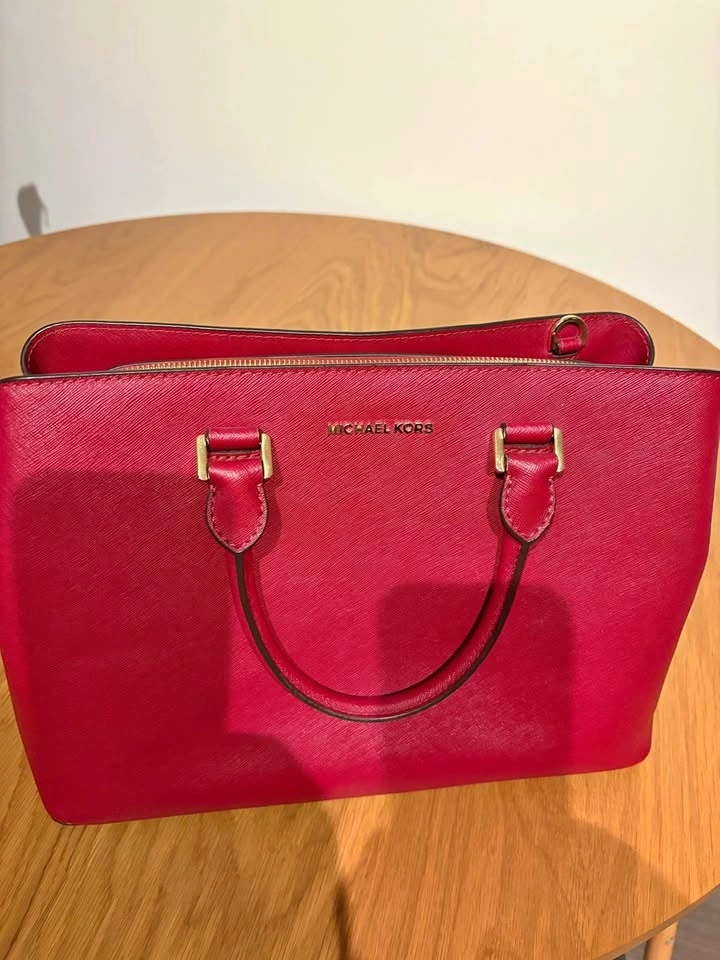 Michael Kors Saffiano Leather Satchel (Cherry Red)