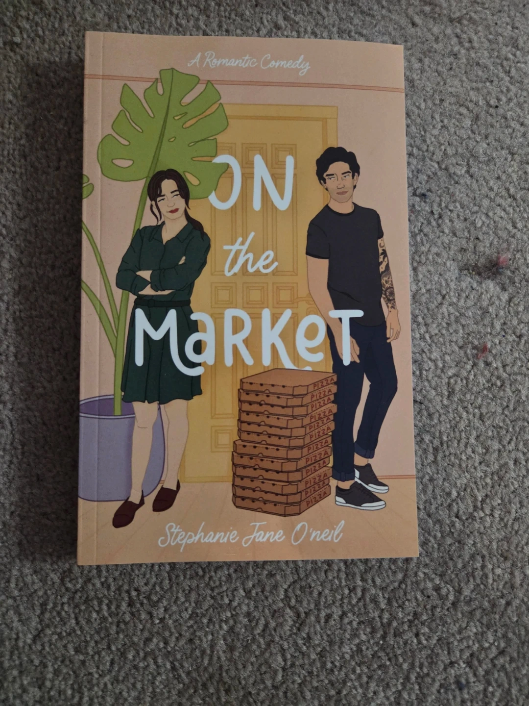 This is a paperback copy of 'On the Market', a romantic comedy novel by Stephanie Jane O'Neil. It's a fun read perfect for a cozy night in. The book is in good condition.