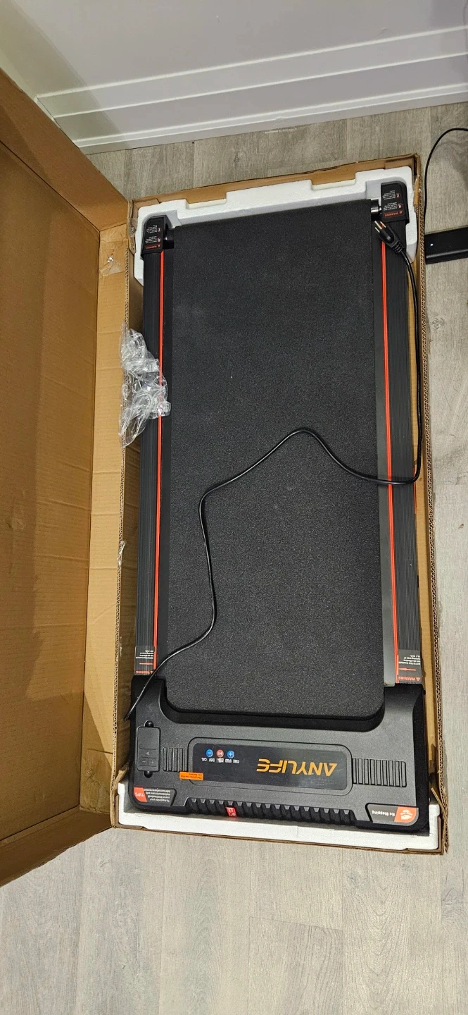 Walking pad treadmill. It's in the box. Includes power cord and a remote. It's brand new, never used. I got it as a gift but i don't use it. It's in perfect condition. It has wheels under it so it can be easily moved around.