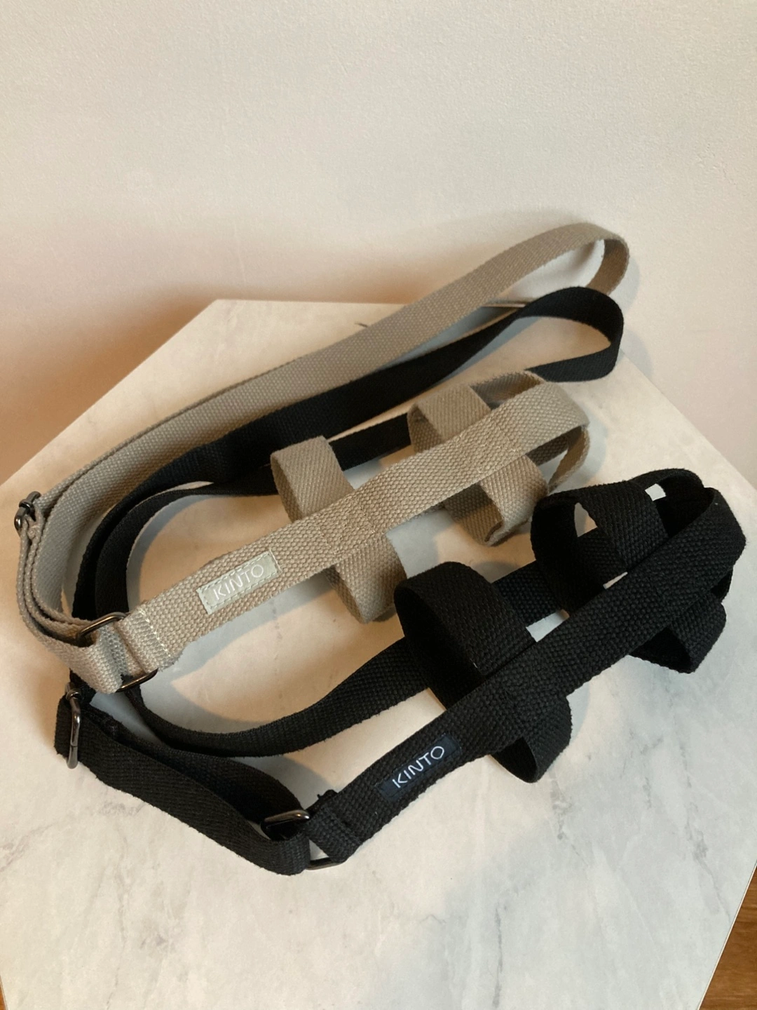 Kinto tumbler straps for sale! One is black and the other is beige. These straps are designed for the DAY OFF TUMBLER 500ml and TRAVEL TUMBLER 500ml. They're perfect for carrying your tumbler hands-free while you're out and about