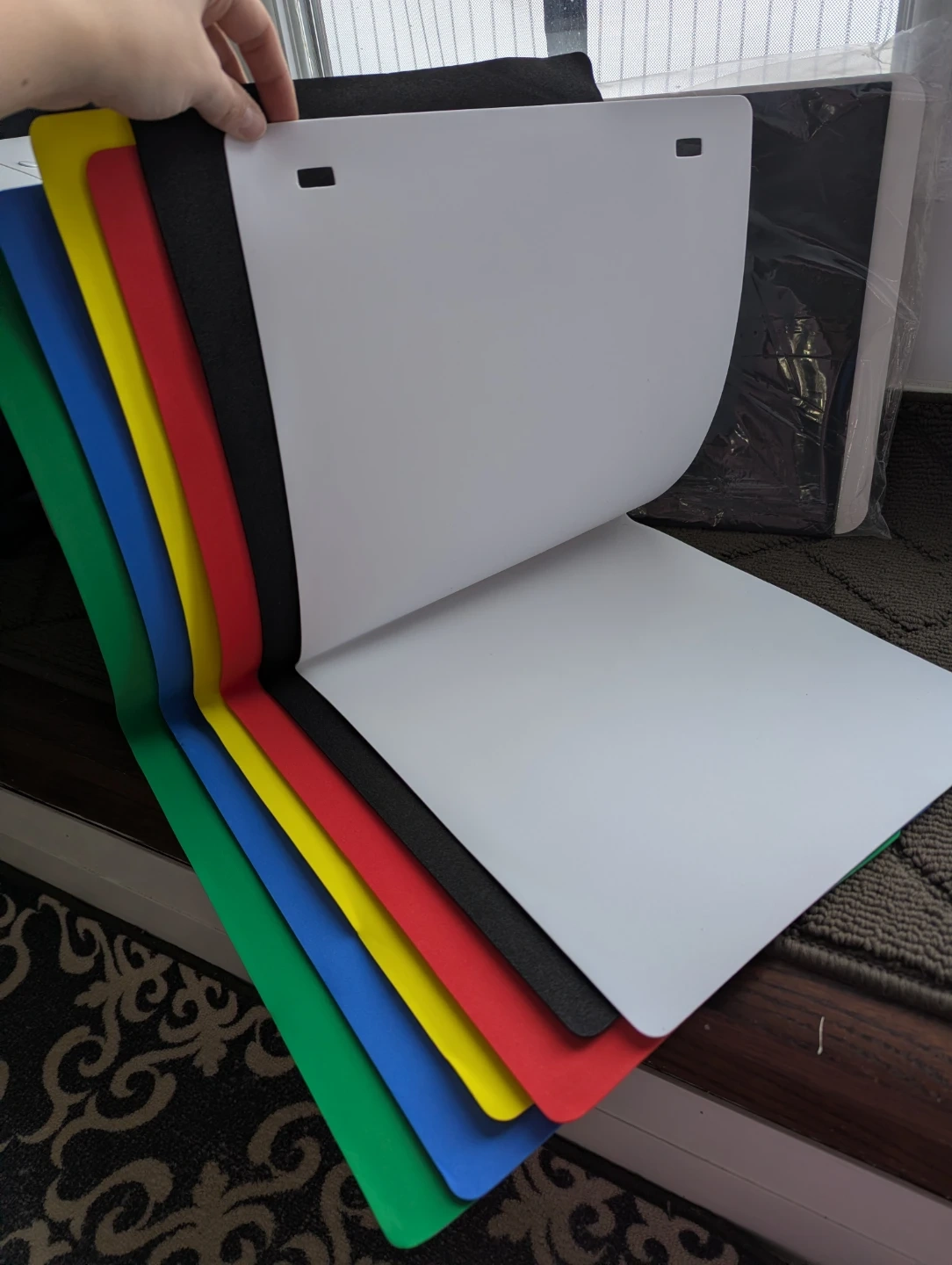 ✔️ KIT INCLUDES: 1 Photo Light Box (12" x 12") (30cm x 30cm), 2 LED Strip Lights, 1 USB Power port cable connected to any USB ports, 6 Color Backgrounds (Red, Black, Blue, White, Green, Yellow), 1 Light reflector, 1 White Reflective board, (1) Carry case bag.