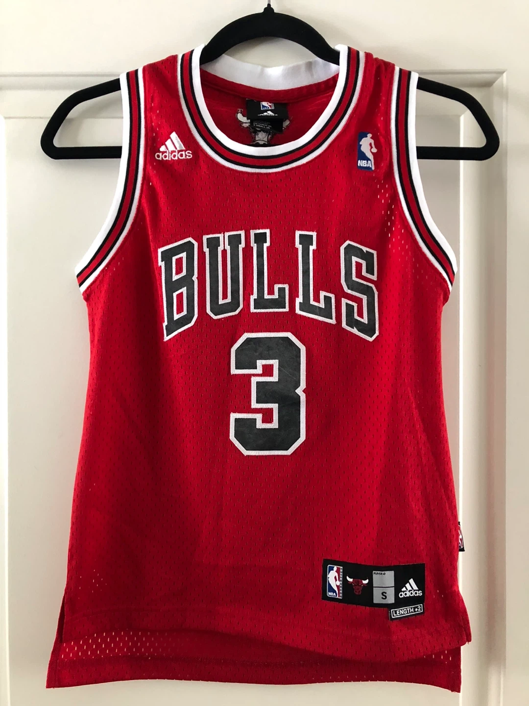 Rare red Adidas Chicago Bulls jersey with Wallace #3. It's a youth small size. Shell is 100% polyester. Condition like new. East Kildonan.