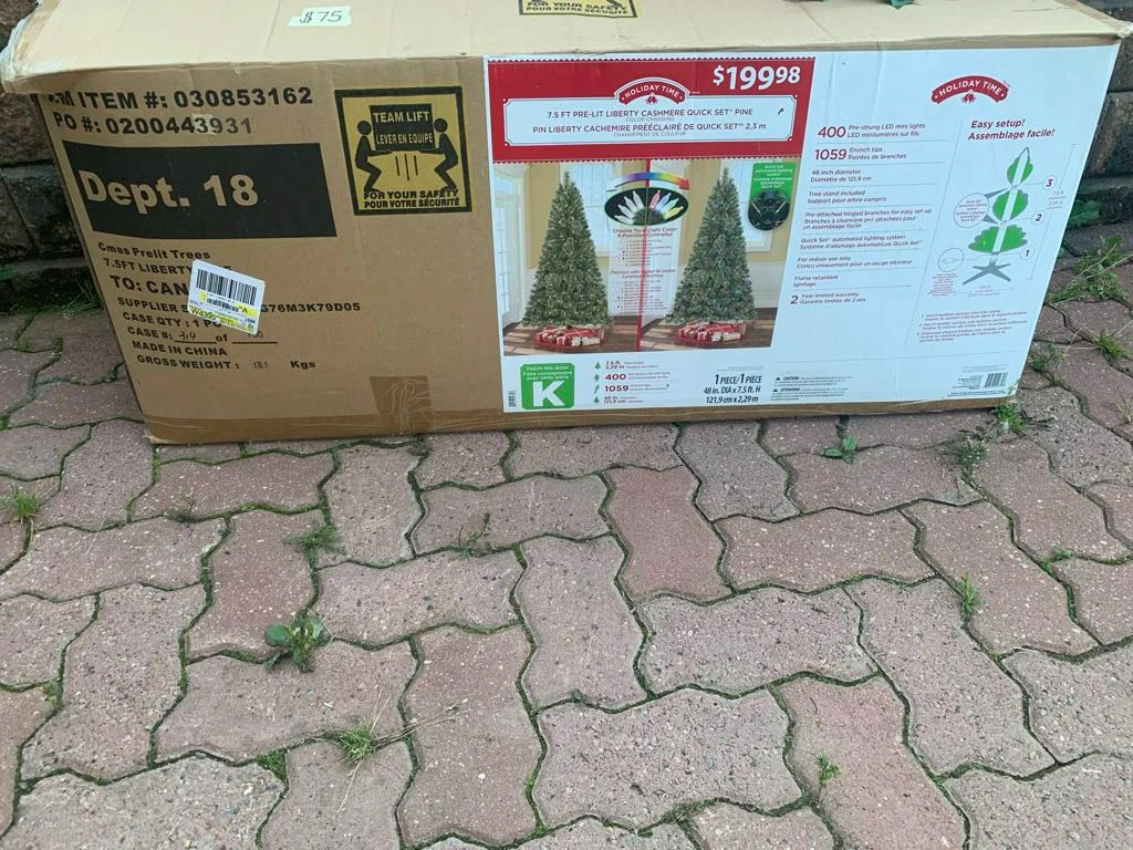 This is a new 7.5 ft pre-lit artificial Christmas tree. only used one year. change between white and colour changing lights