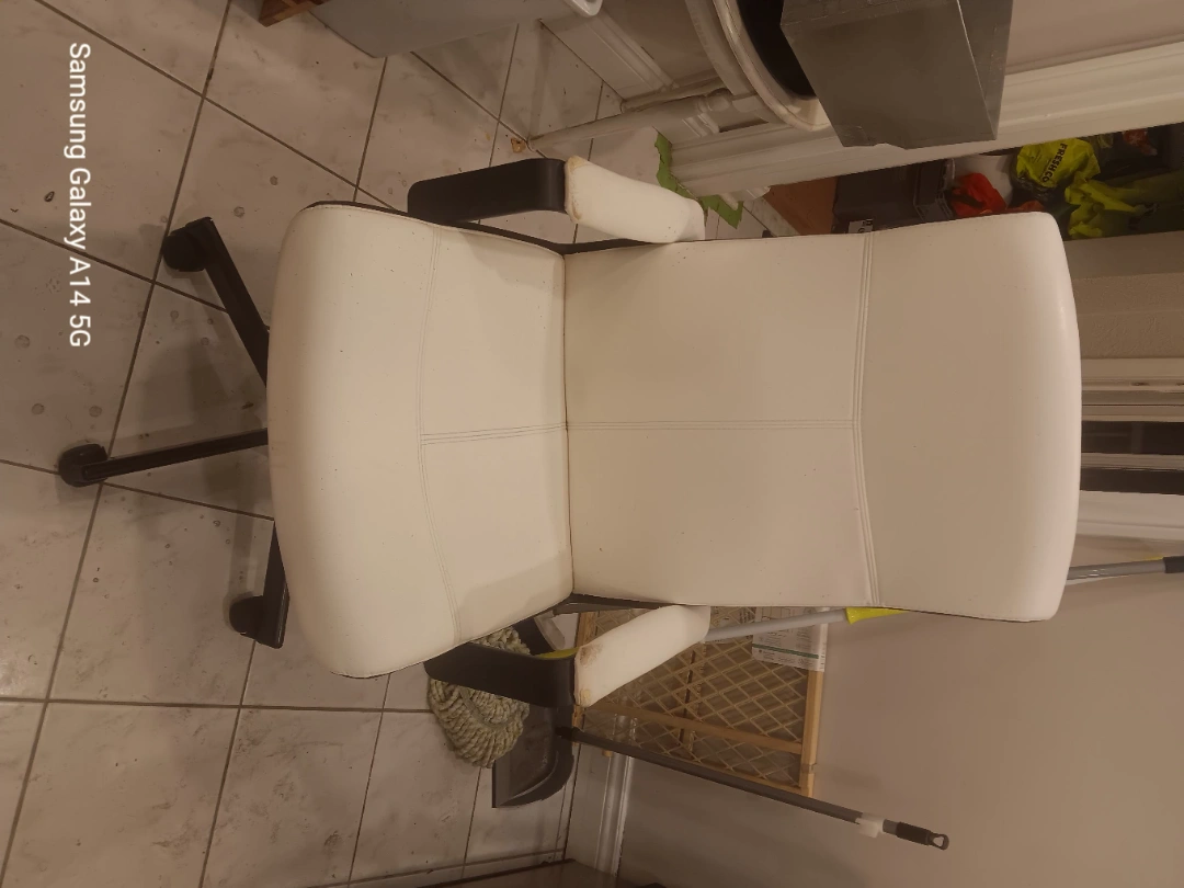 Selling a white office chair . It's in good condition and ready for a new home! Perfect for your home office or study space