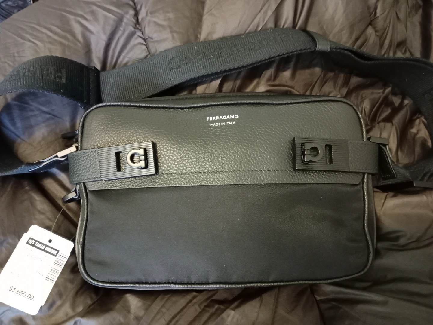 75This Ferragamo crossbody bag is in excellent condition, it is brand new! It features a sleek black design with the iconic Ferragamo logo. The bag is made in Italy and originally retailed for $1,650. It's a stylish and practical accessory for everyday use. Christmas is coming guys it won't last long!!! your saving over a $1000.