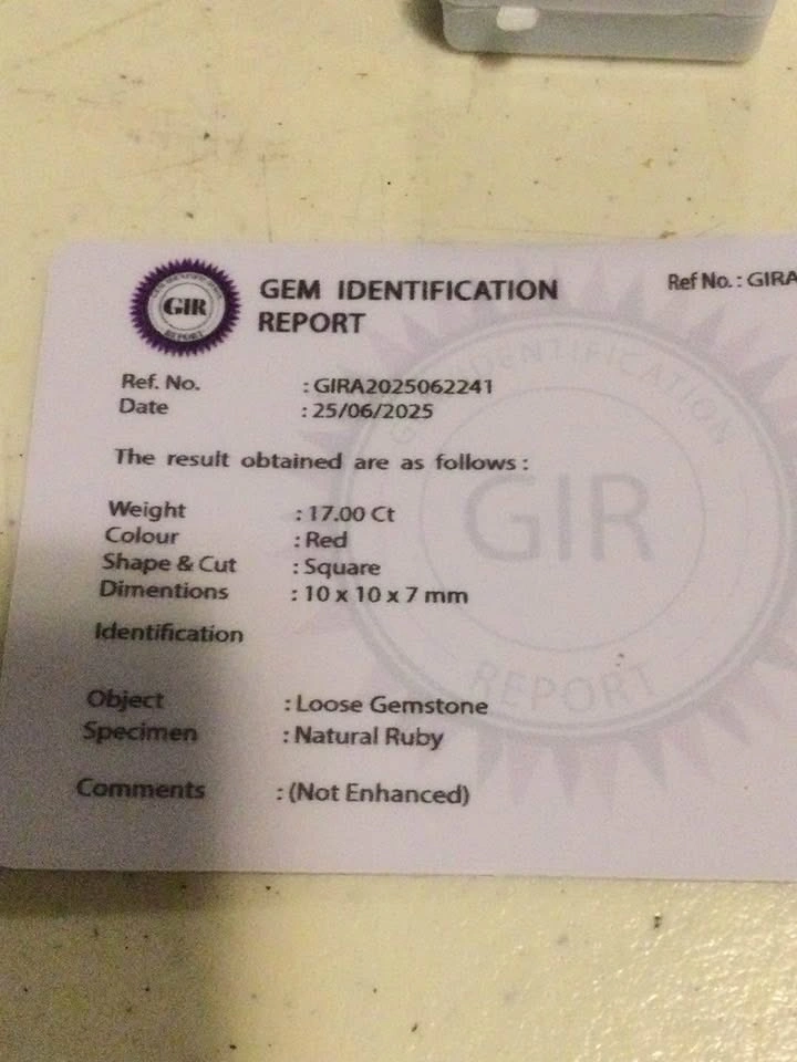 122This Ruby is considered a highly valuable and rare gemstone due to its exceptional size, cut, and natural origin. Rubies of this carat weight and quality are extremely rare, making this stone truly unique. The square cut brings out the ruby's natural beauty, and the fact that it's naturally mined and not enhanced ensures its authenticity and value. The certification from a reputable gemological laboratory provides an objective assessment of the ruby's quality and characteristics. Feel free to message if you have any questions!