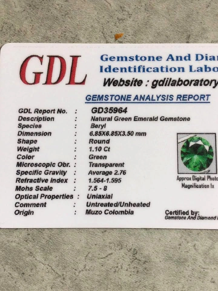 122Emerald, 6.85 mm x 6.85 mm x 3.50 mm, Round Cut, Naturally Mined, Not Enhanced, Certified, Gemstone Comes With A Gemology Report, This Stunning Green Emerald Would Be An Excellent Addition To Anyones Gemstone Collection Or In A Piece Of Jewelry.