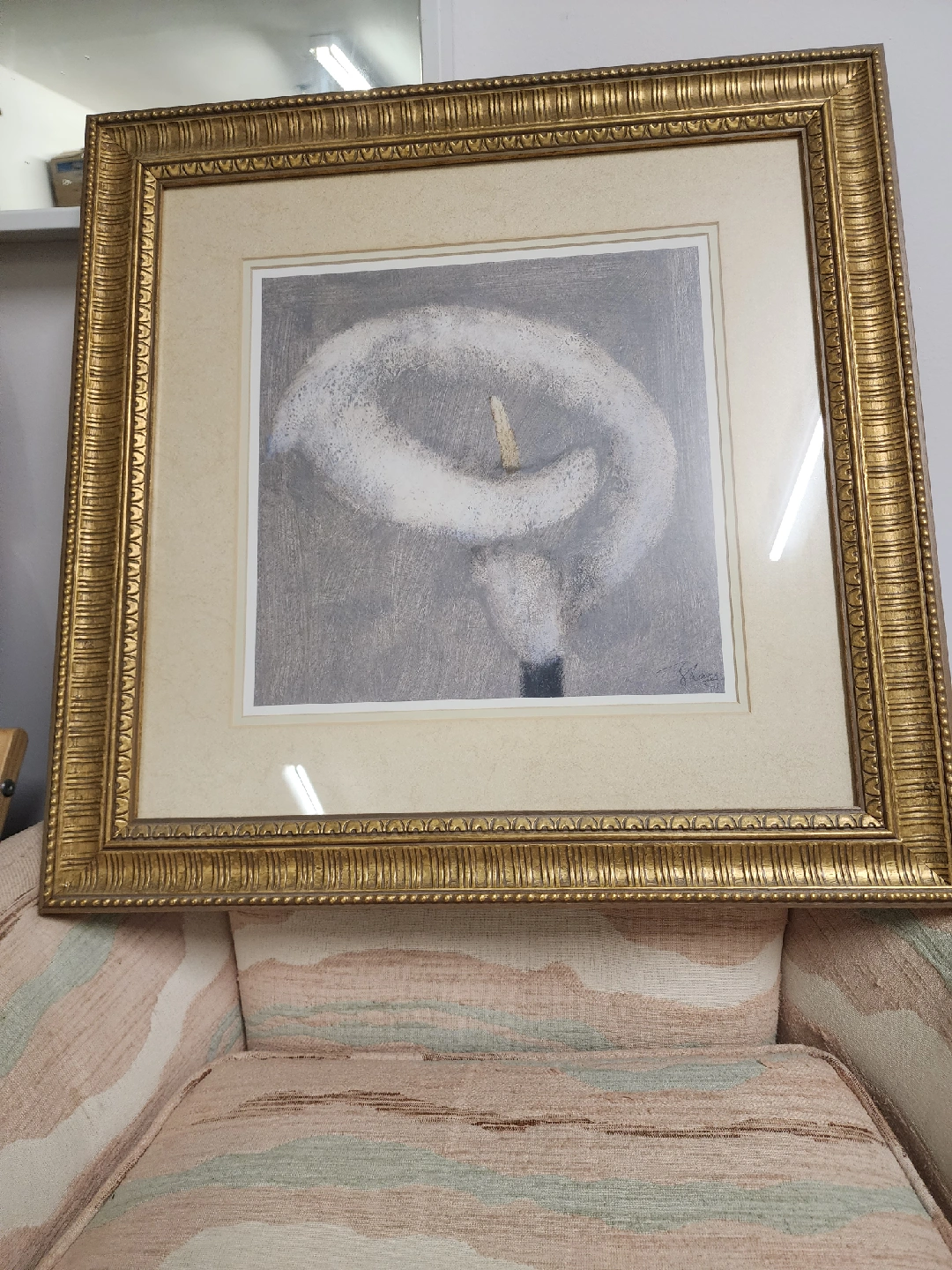 A lovely framed print featuring a floral design! The frame has an ornate gold finish. It would be a great addition to any room