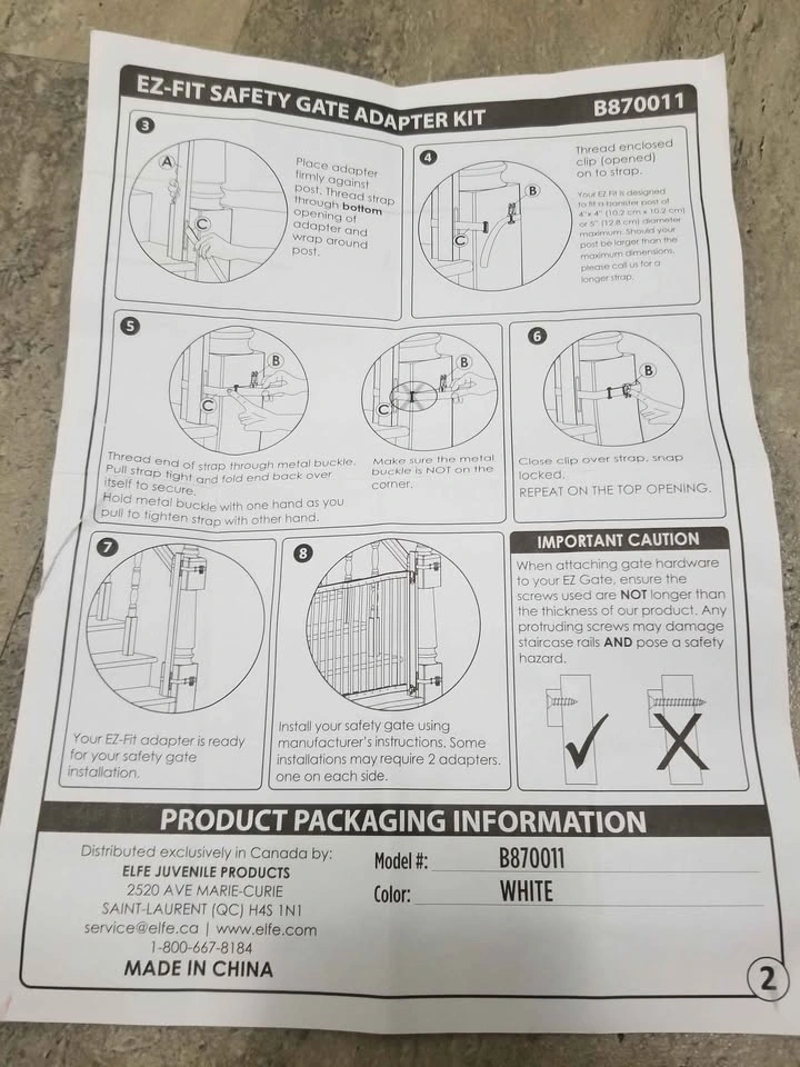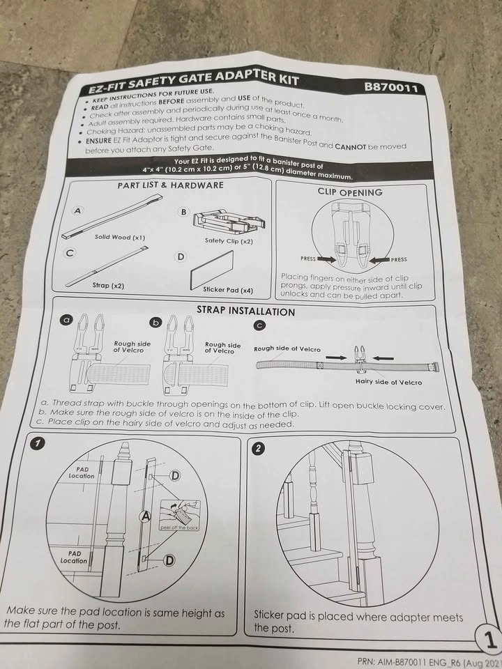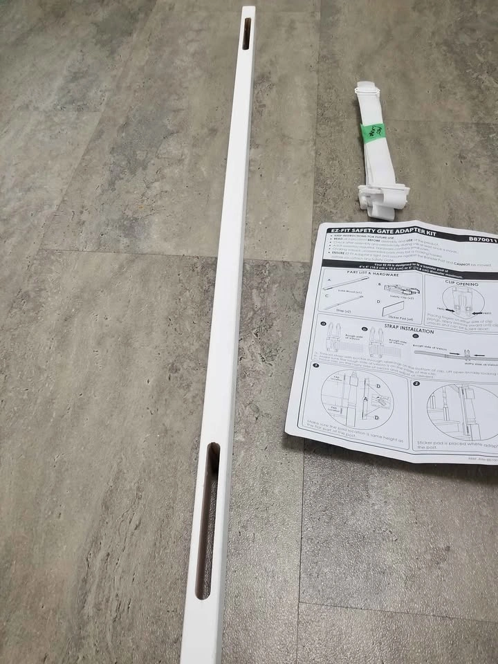 Does not come witch sticker pads could use double sided tape. Comes with wood piece and a strap that can wrap around the wood and your stairway banister post for a baby or pet gate without screws. Located in the Hunt Club Park area near Conroy and Johnston road.
