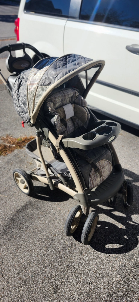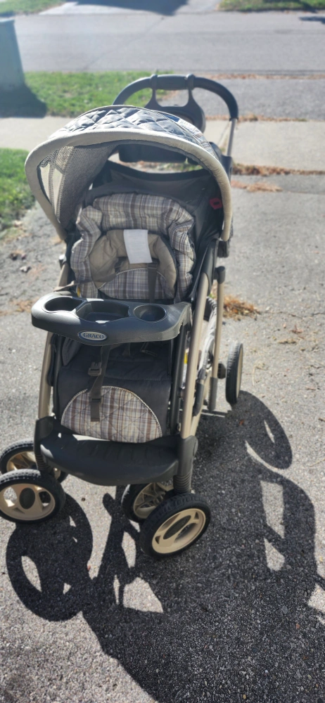 115Selling a used Graco stroller. It's in good condition and ready for a new family! It features a convenient parent tray with cup holders and a storage basket underneath for all your essentials. The stroller also has a canopy to protect your little one from the sun