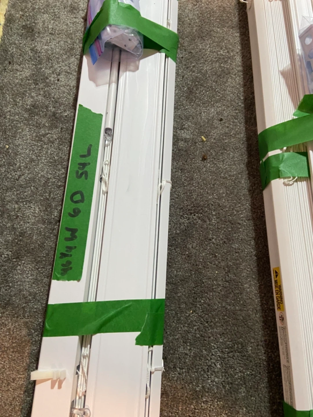 Selling white window blinds. Sizes include 46 inches wide by 60 inches long. Larger blind has been sold. Price is for each blind. They're in great shape and ready to install in your home!