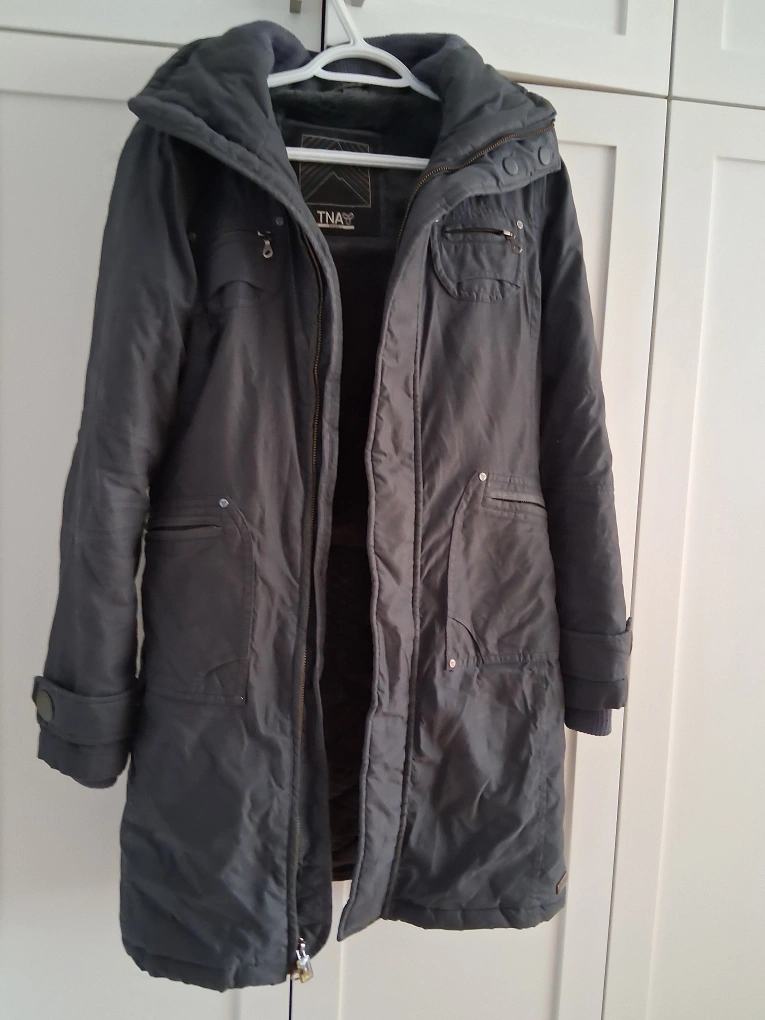 Selling a TNA winter coat in size XSmall. It's a stylish grey color and perfect for keeping warm during the colder months. Great for everyday wear!