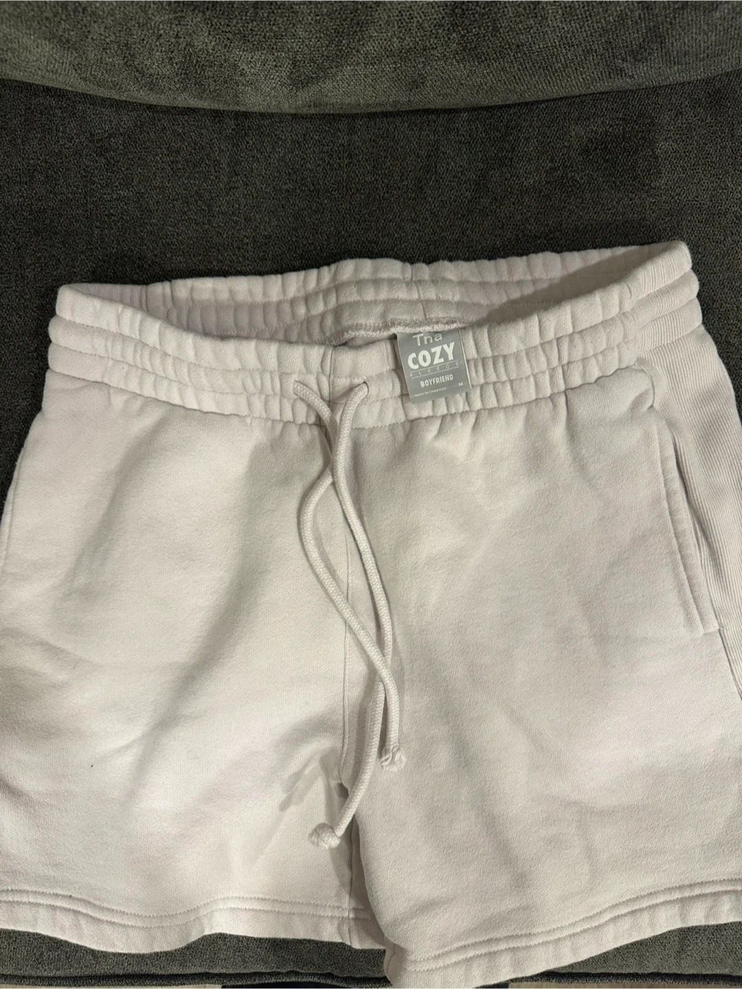 Selling a pair of Tna Cozy Boyfriend shorts in light pink. They're super comfy and perfect for lounging around or running errands. They are in great condition and ready for a new home!