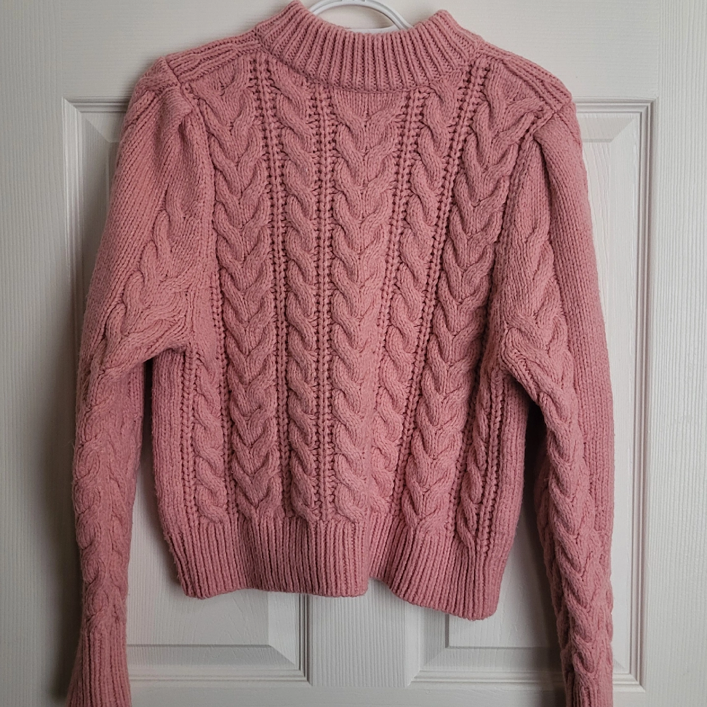 Selling a cute H&M cable knit sweater in a lovely pink colour! It's a size M (fits S-M) and in great condition. The material is soft and cozy, perfect for cooler weather