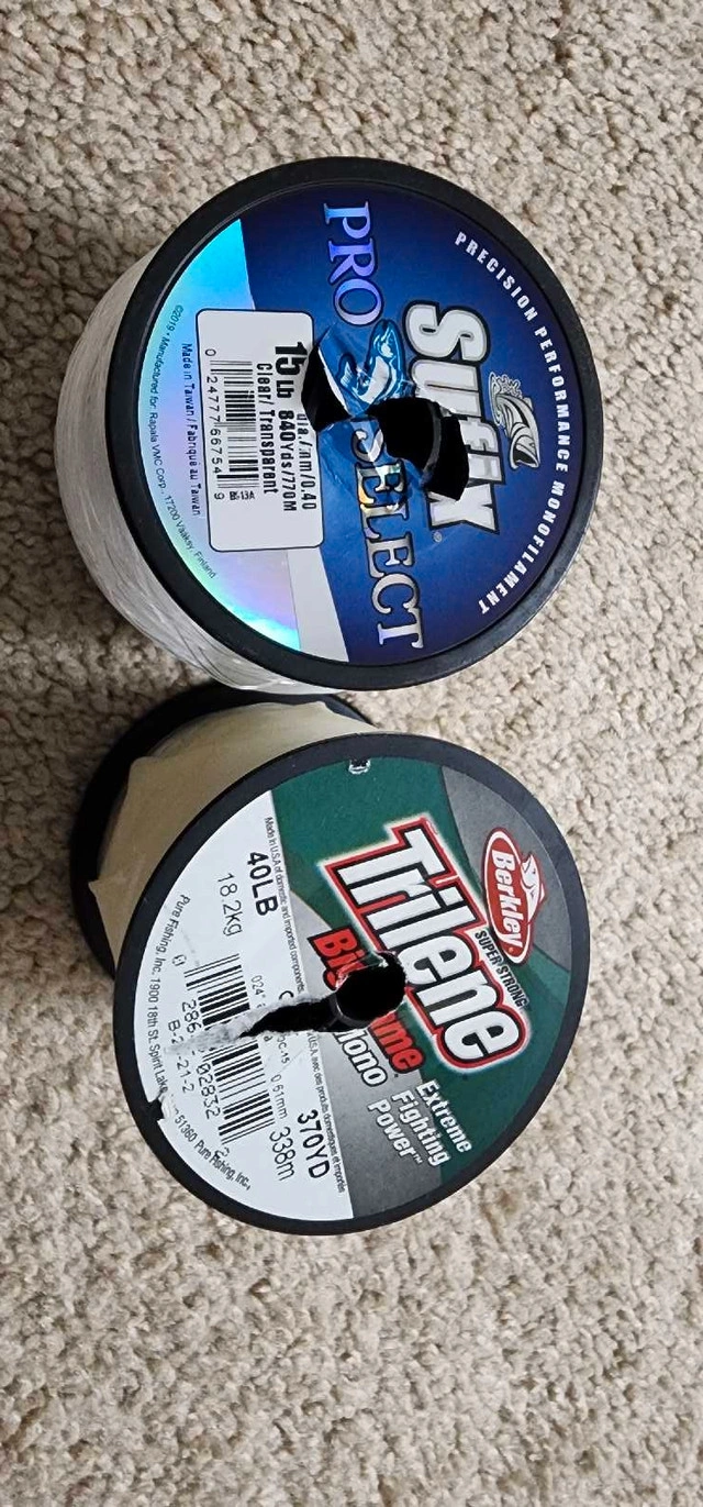 Sufix 832 Superline (Clear): 15 lb test. This braided line is ultra-strong, low-stretch, and cast like a dream. Made in Finland for top performance – great for finesse fishing or walleye. Berkley Trilene XX 40 lb test. Heavy-duty mono line with extreme fighting power. Ideal for big game like pike, musky, or saltwater trolling. Super abrasion-resistant!