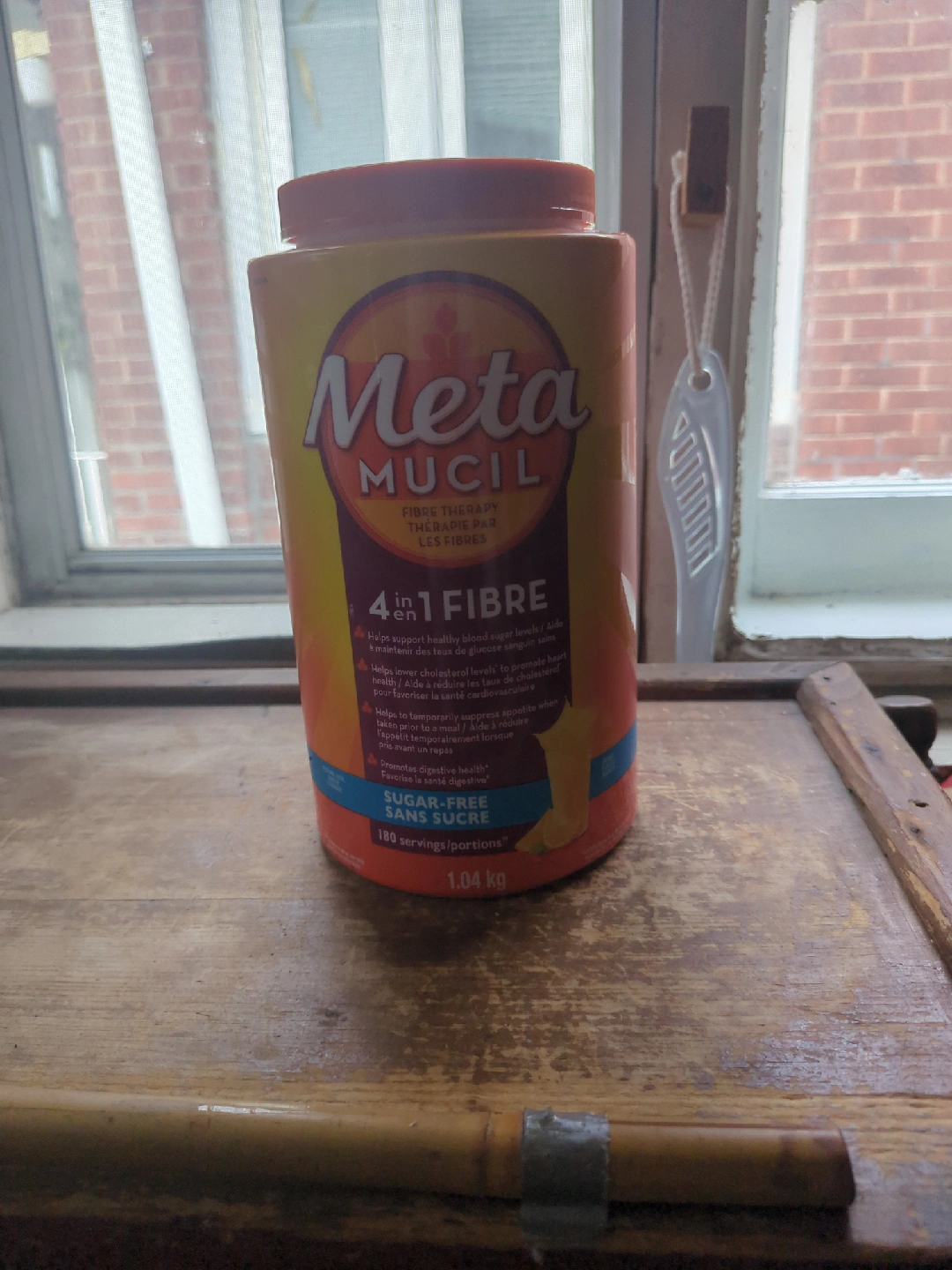 616Selling a container of Meta Mucil 4 in 1 Fibre Therapy! It helps support healthy blood sugar levels and lower cholesterol to promote heart health. It can also help to temporarily suppress appetite when taken before a meal and promotes digestive health. This is the sugar-free version and contains 180 servings/portions never been open and useed contain 1.04 Kg of powder expire date is 05/2027