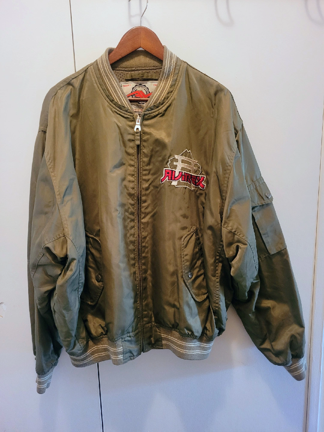 1000+Rock a piece of vintage flair with this olive green Avirex Bomber Jacket, a true statement piece in size XXL! This pre-owned jacket features unique embroidery on the front and a bold dragon design on the back, showcasing the iconic Avirex style. Here are some details: * Brand: Avirex * Size: XXL * Colour: Olive Green * Design: Embroidered front logo and back dragon * Style: Bomber Jacket If the ad's up, it's still available!