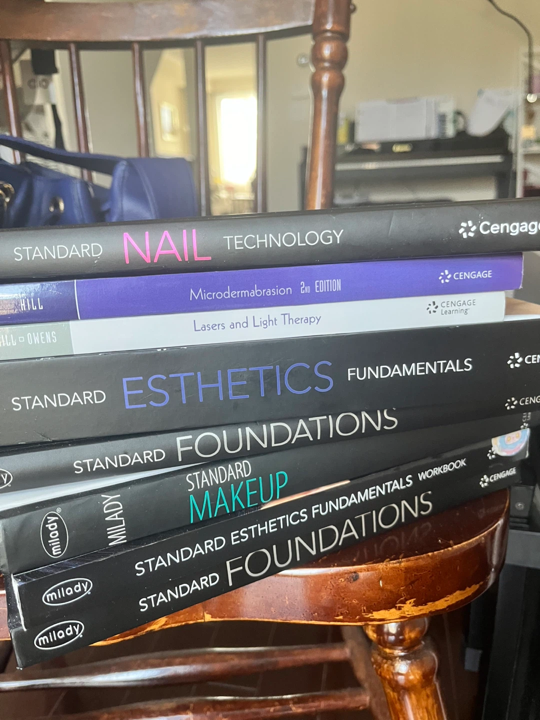 Selling a set of Milady books related to esthetics and nail technology, along with a rolling storage case. These are great for anyone studying in the beauty field!