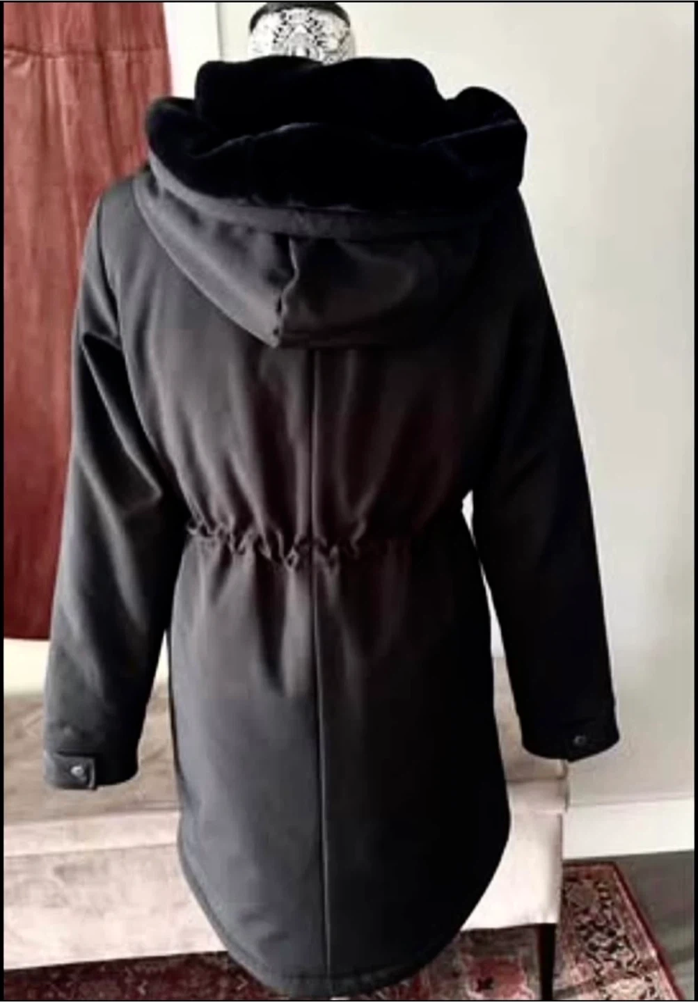 292Stay warm this winter with this stylish black parka! It features a cozy faux fur hood to keep you extra snug. The parka has a drawstring waist for a flattering fit and a sleek, minimalist design. Perfect for those chilly Canadian days! In excellent like new condition, only worn a few times, moving overseas and need to let it go.