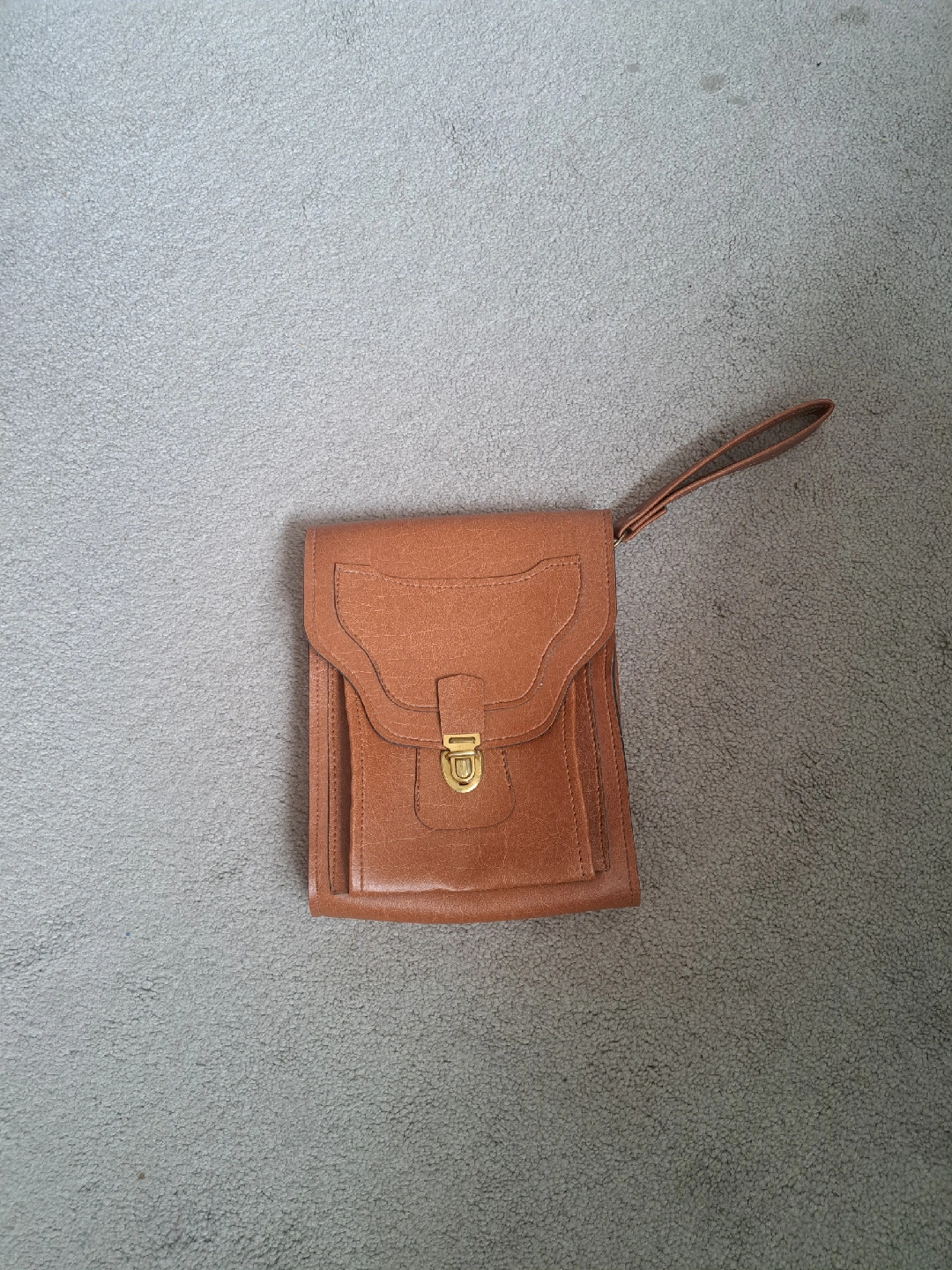 This is a cute little brown leather handbag. It's in great condition and ready for a new home! It's perfect for carrying your essentials.