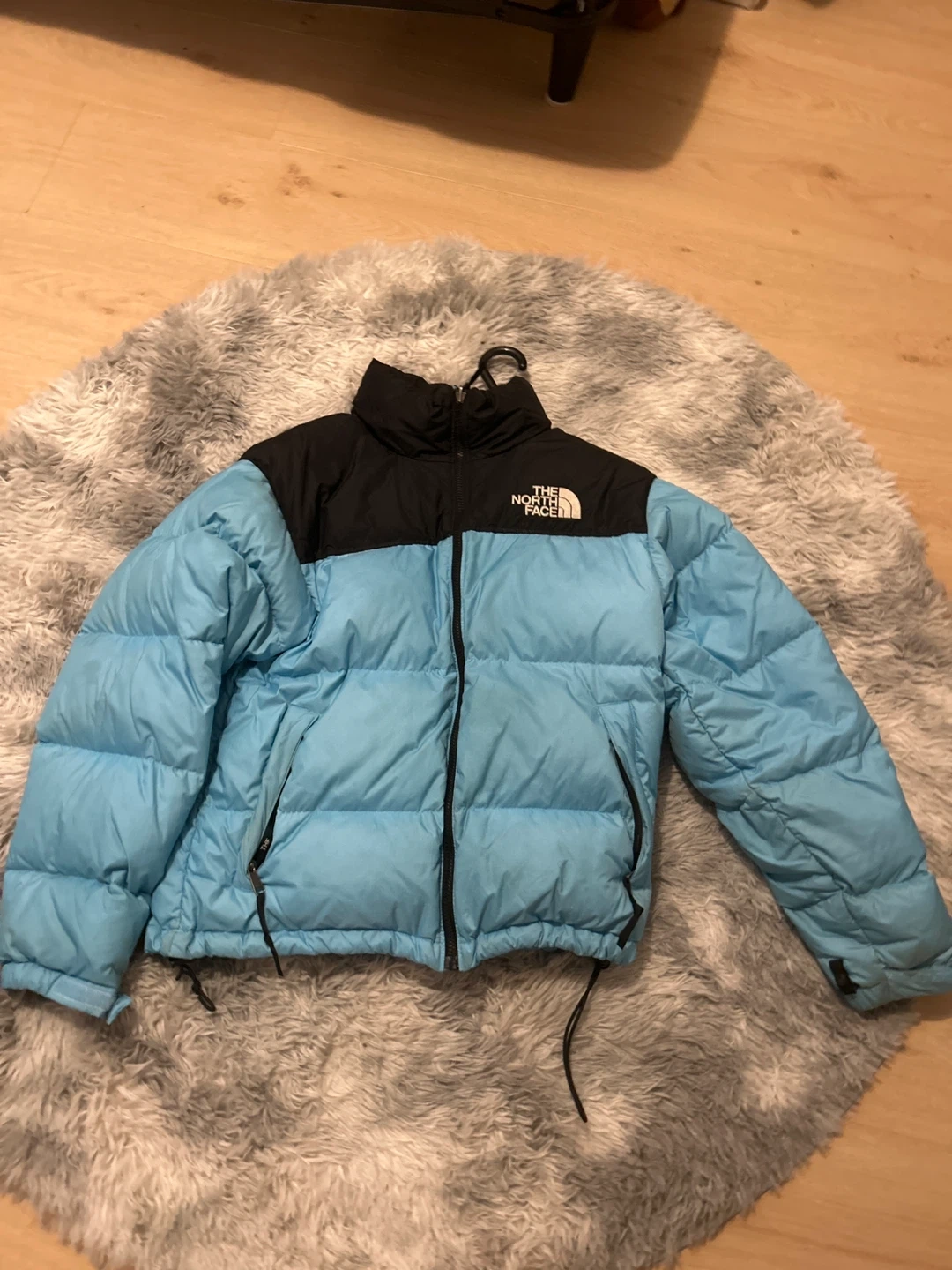 Selling a lightly used The North Face puffer jacket in a stylish light blue and black colourway! It's in great condition and ready for a new home. Perfect for staying warm and looking great during the colder months