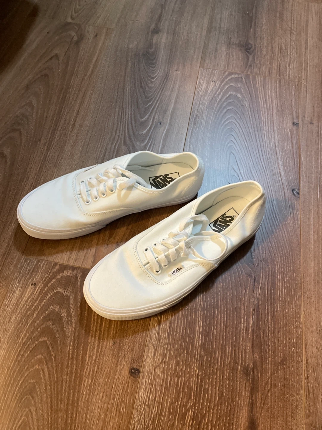 Selling a pair of classic Vans Authentic sneakers in white. They are in great shape and ready for a new home! The size is US Men's 8.5 / US Women's 10.