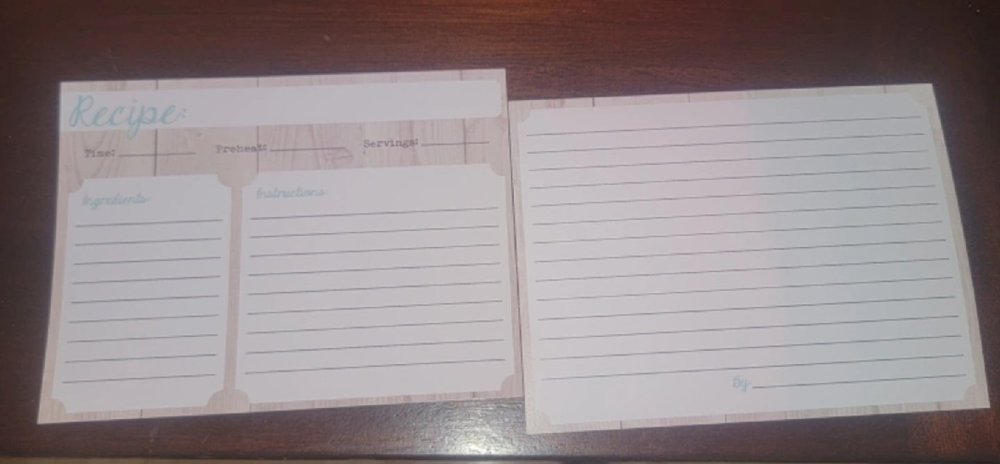 This set of 21 double-sided recipe cards are perfect for jotting down your culinary creations and keeping your recipes organized! The cards offer ample space for ingredients and instructions. The cards are in new condition.
