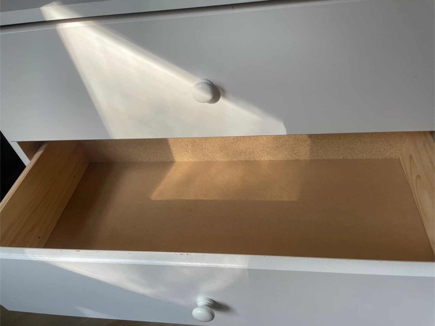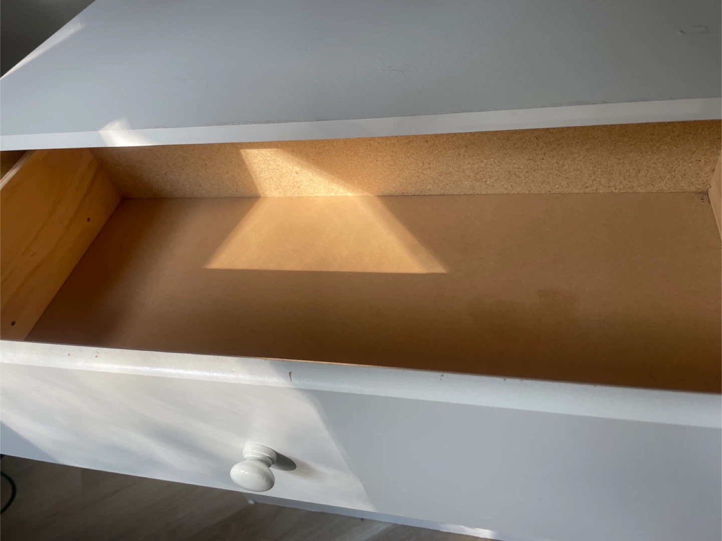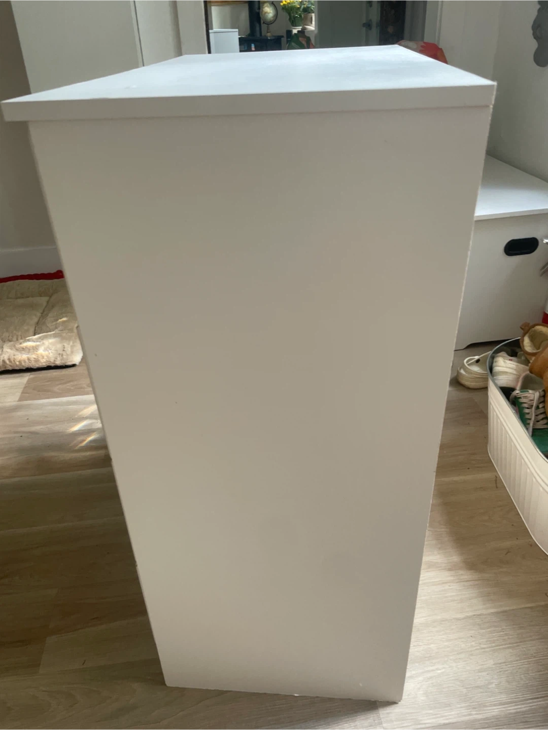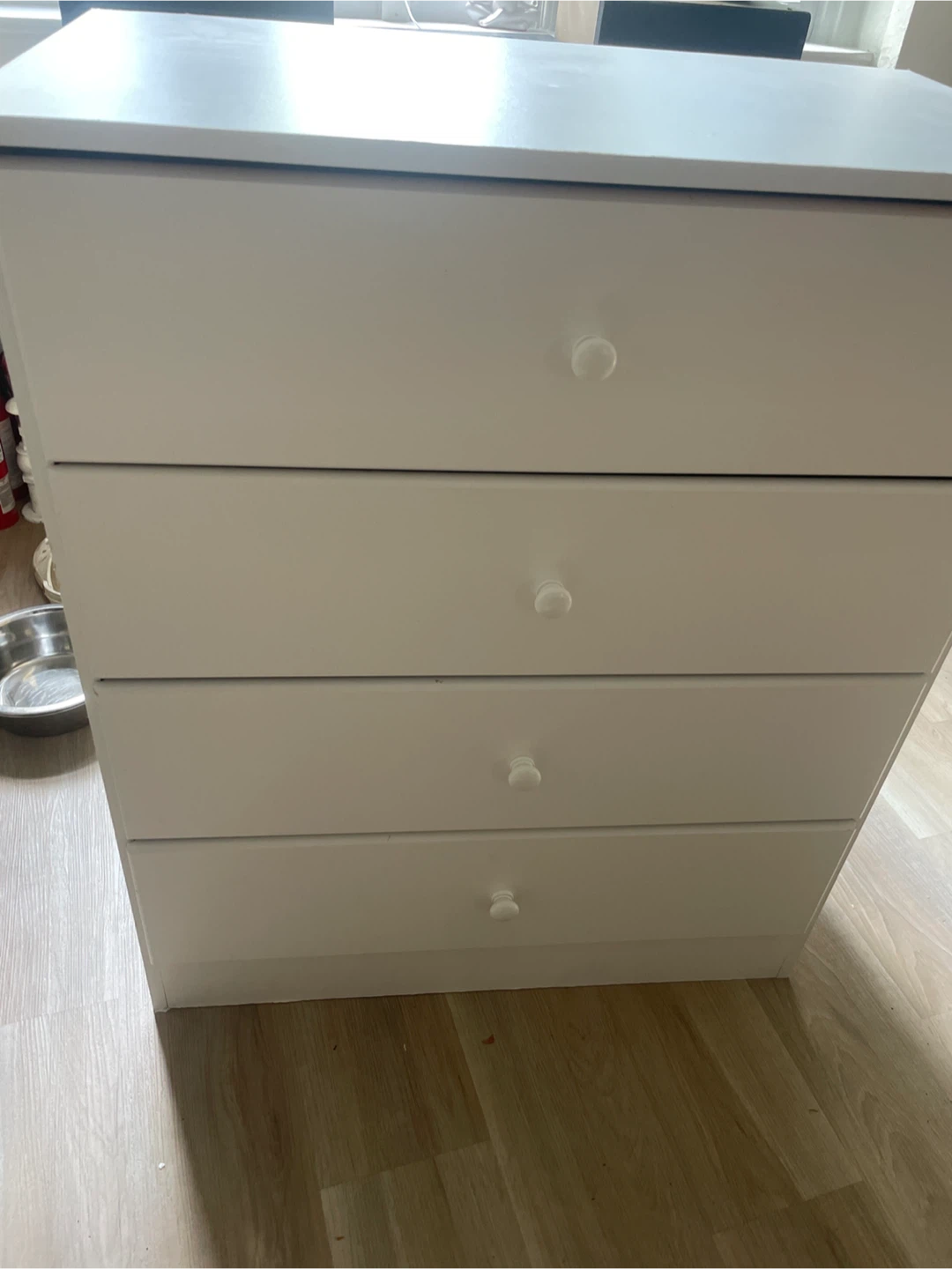 Selling a simple white dresser with four drawers. It's in good condition and ready for a new home. Perfect for adding extra storage to any room!