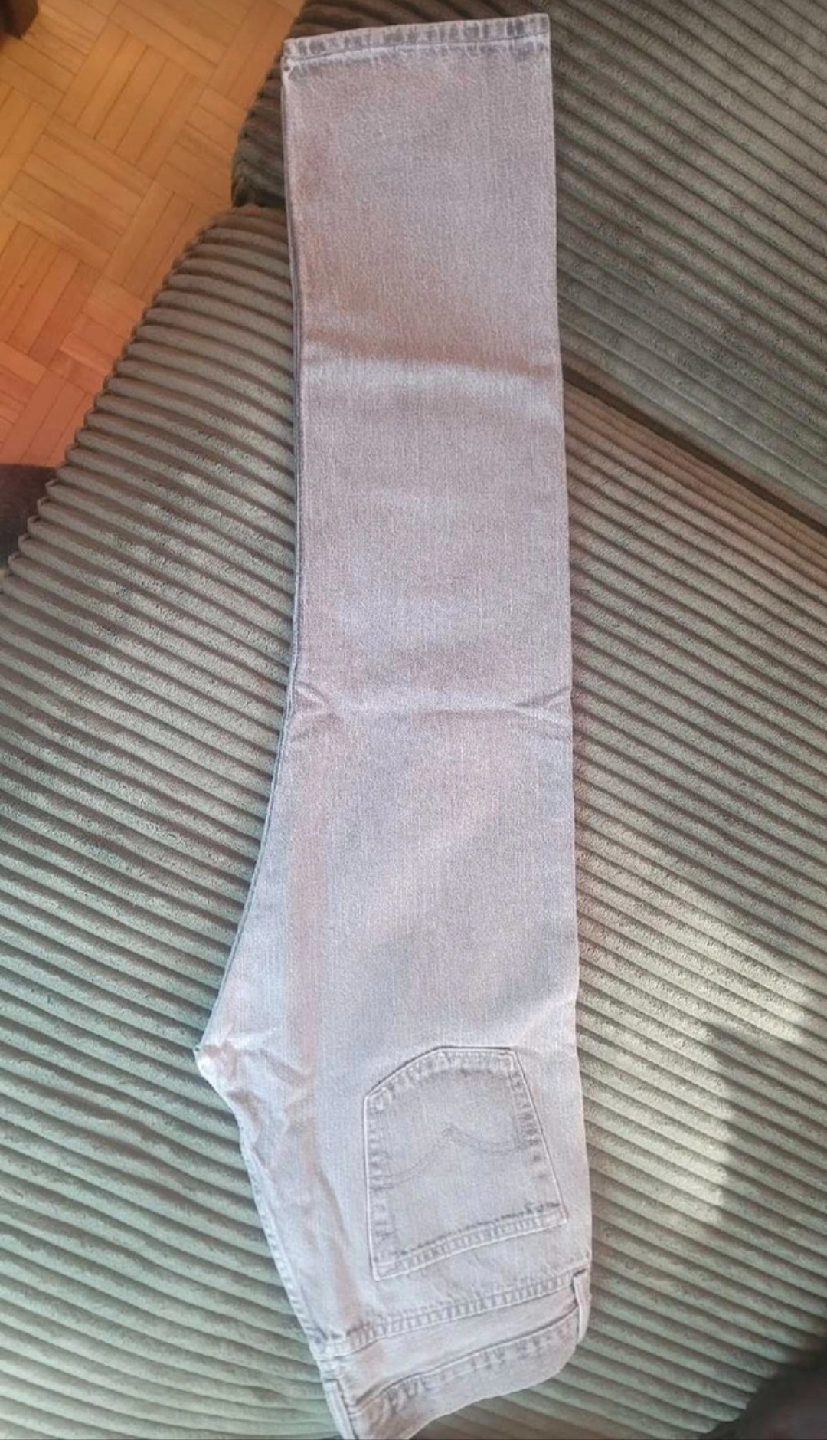 These are a pair of Levi's 505 jeans in a stylish grey wash, sized at 34x34. They've been pre-loved but still have plenty of life left. They're perfect for casual wear and have that classic Levi's fit. Additional specs: