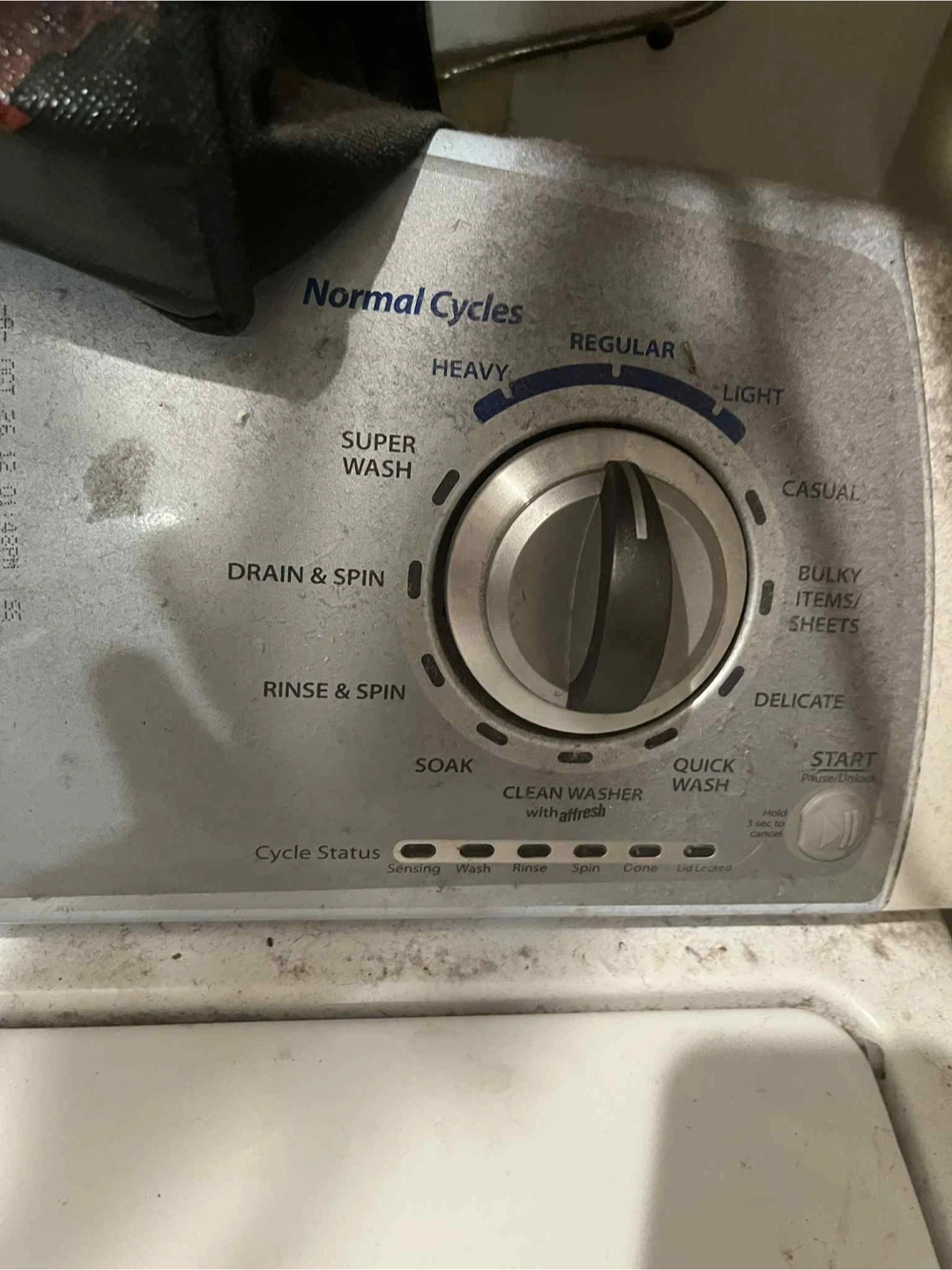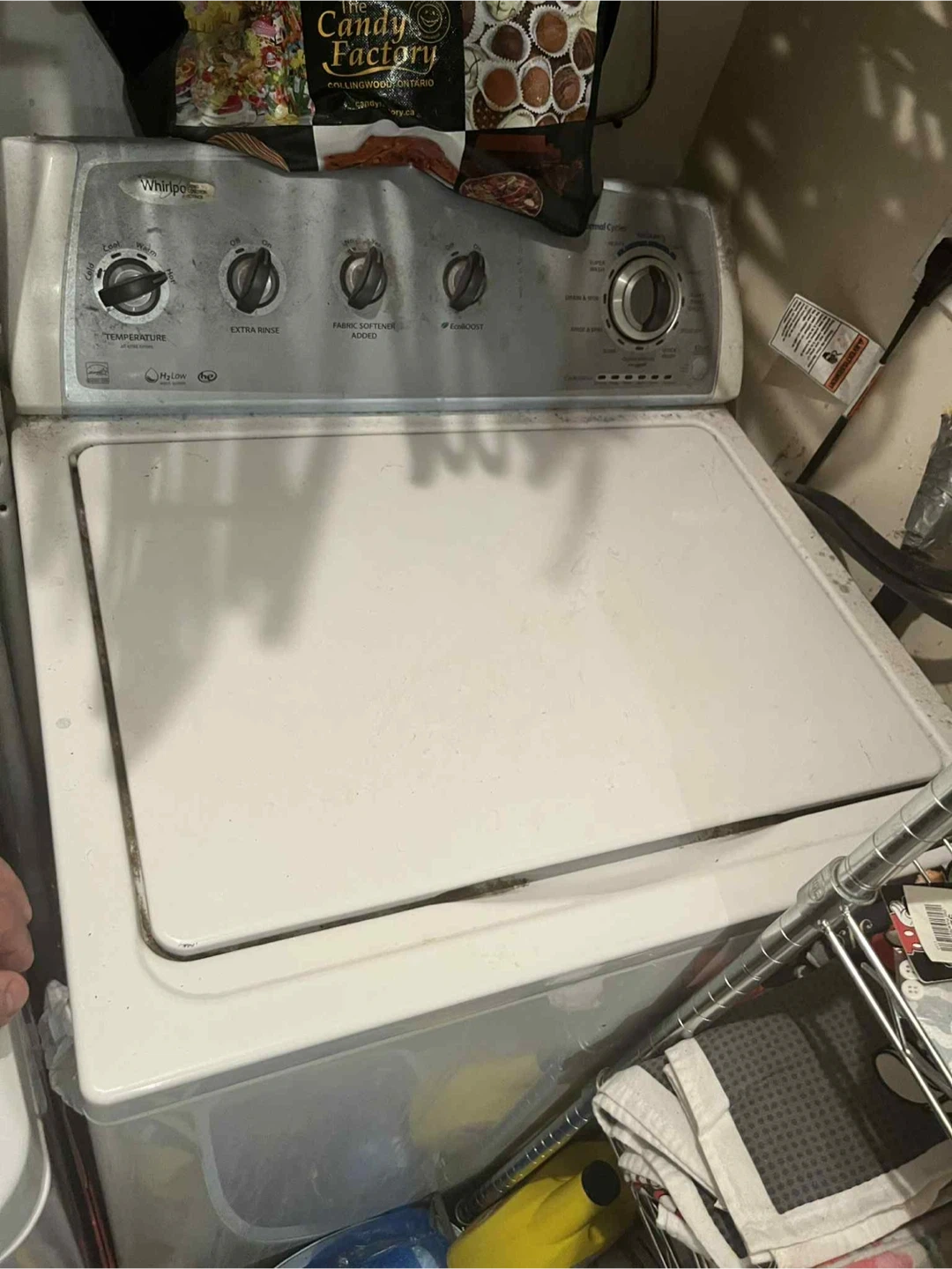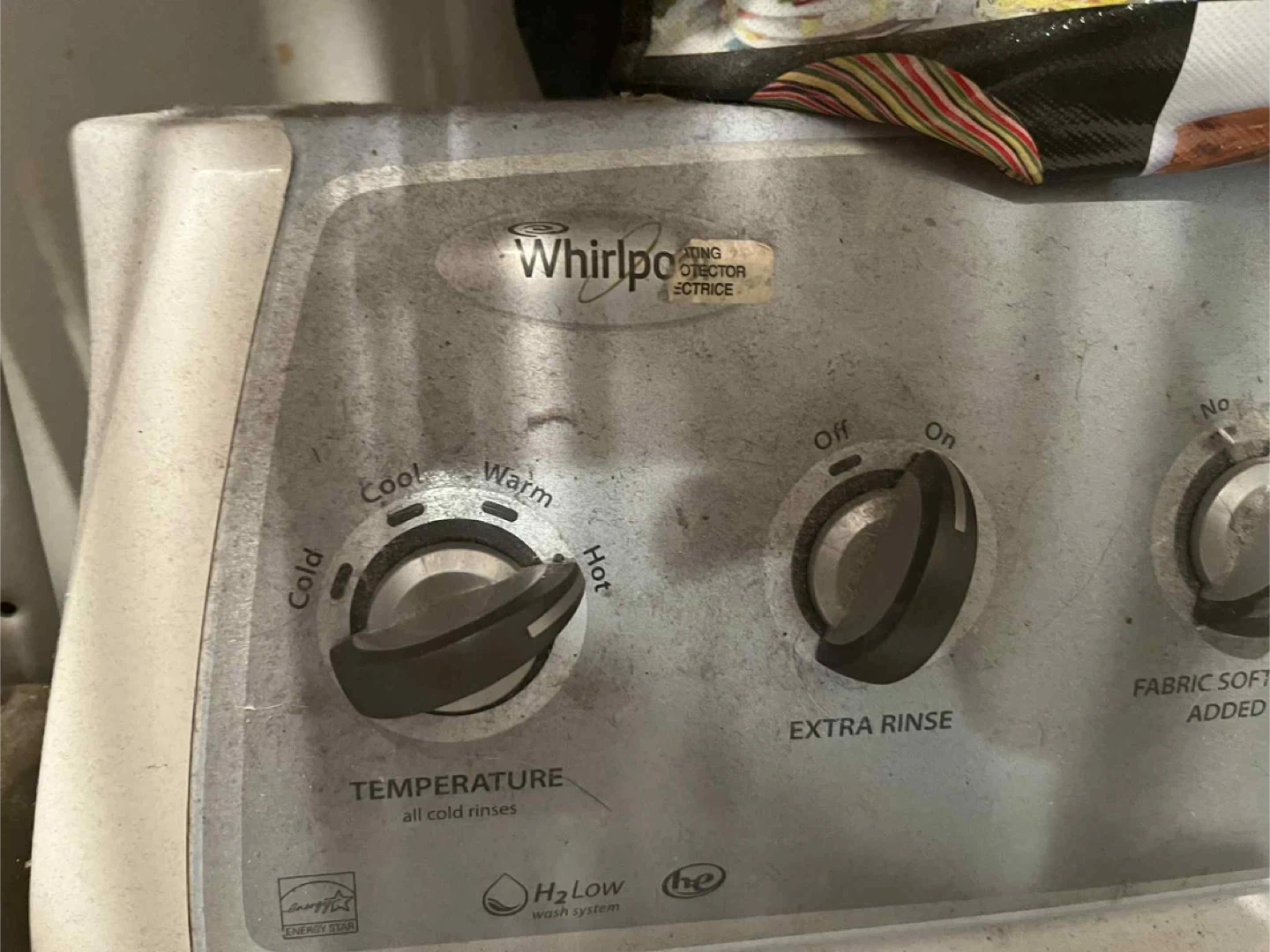 Selling a Whirlpool top load washing machine. It has normal cycles, including heavy, regular, light, casual, bulky items/sheets, and delicate. There are also options for drain & spin and rinse & spin. It also has a clean washer cycle with affresh