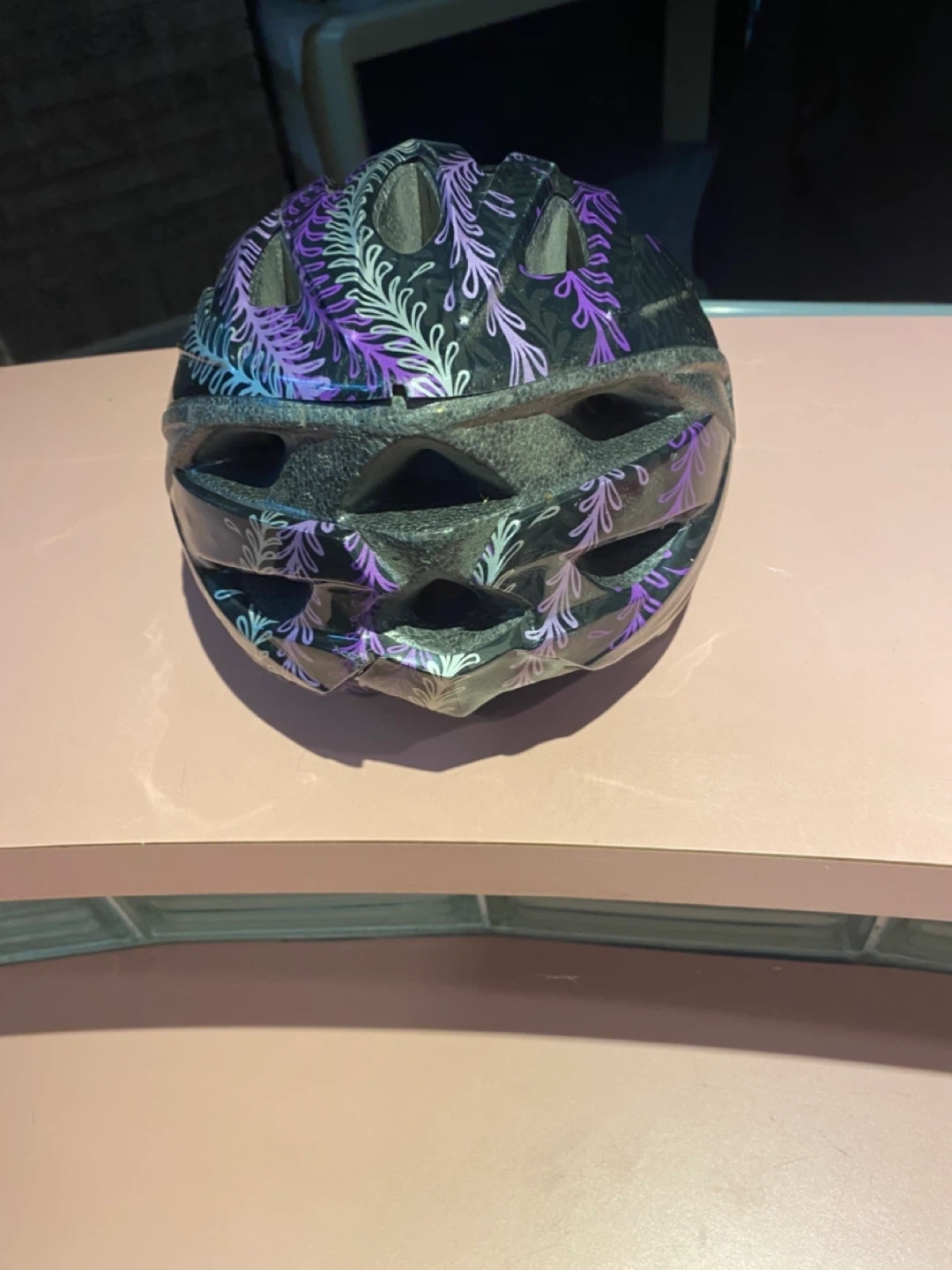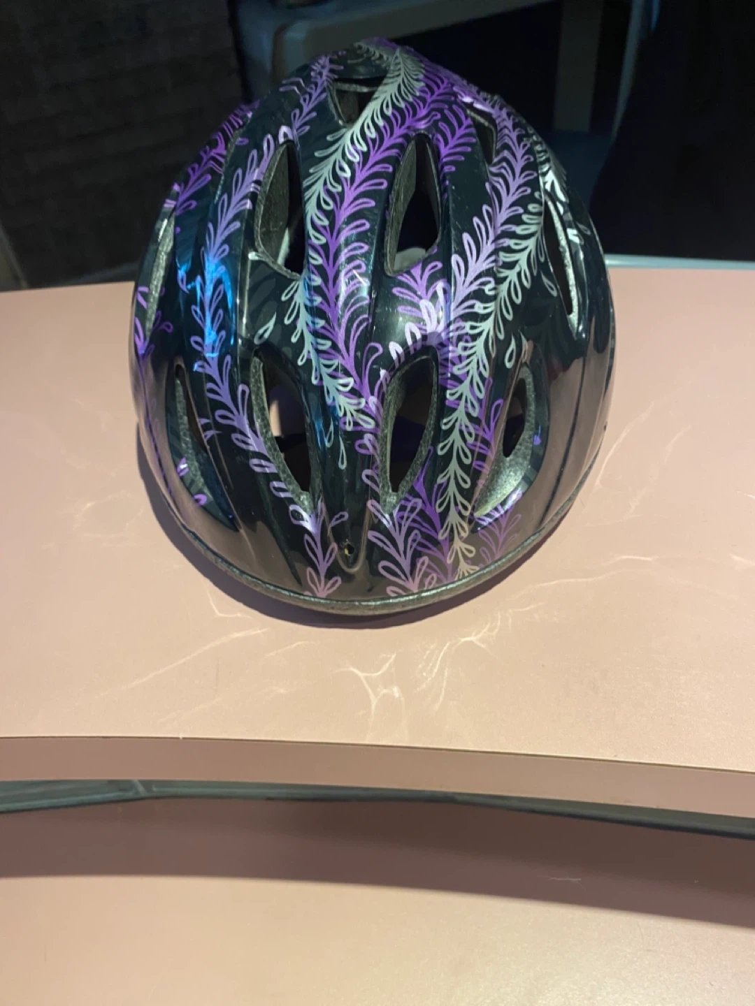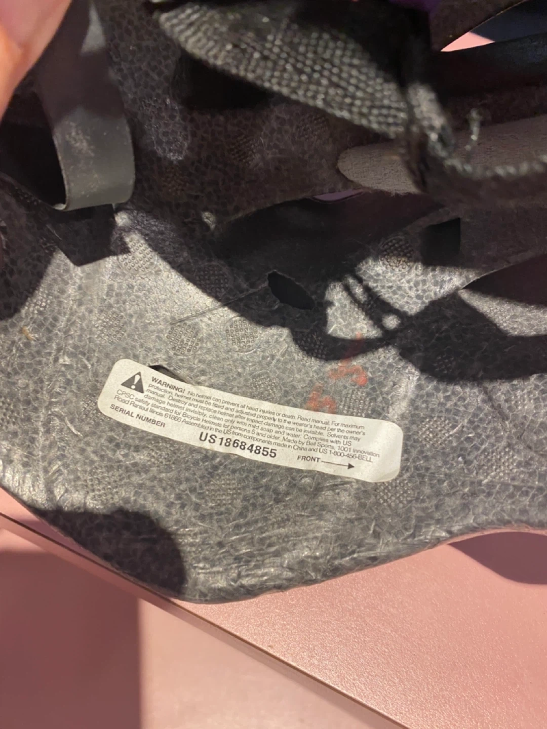 Selling a Bell Banter TP19Y youth helmet in black with a cool purple and silver design! It's size M, fitting heads 54-58cm. This helmet is ready for your next adventure!