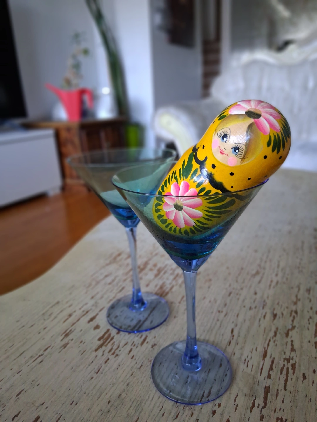 Two beautiful blue ombre martini glasses. Quite the pair, and make any drink Fancy!
