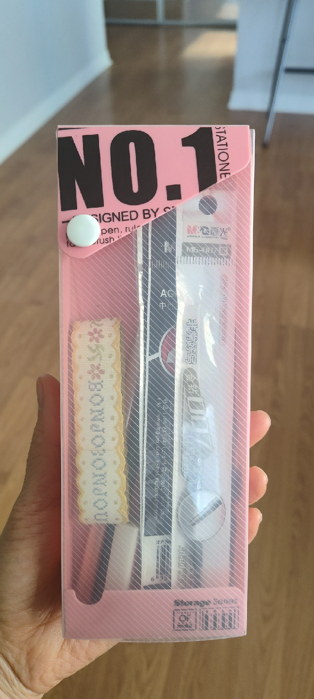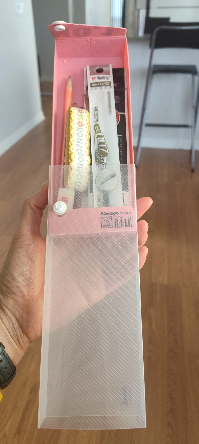 Selling a pink stationery storage box! It's in like-new condition and ready to hold all your pens, pencils, and other supplies. It has a snap closure to keep everything secure. Perfect for students or anyone who likes to stay organized.