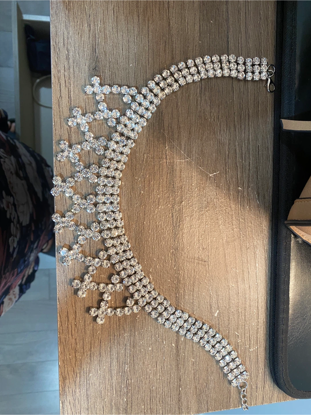 Sparkle and shine with this beautiful rhinestone choker necklace! It's perfect for adding a touch of glam to any outfit. The necklace features a stunning design with shimmering rhinestones that catch the light beautifully.