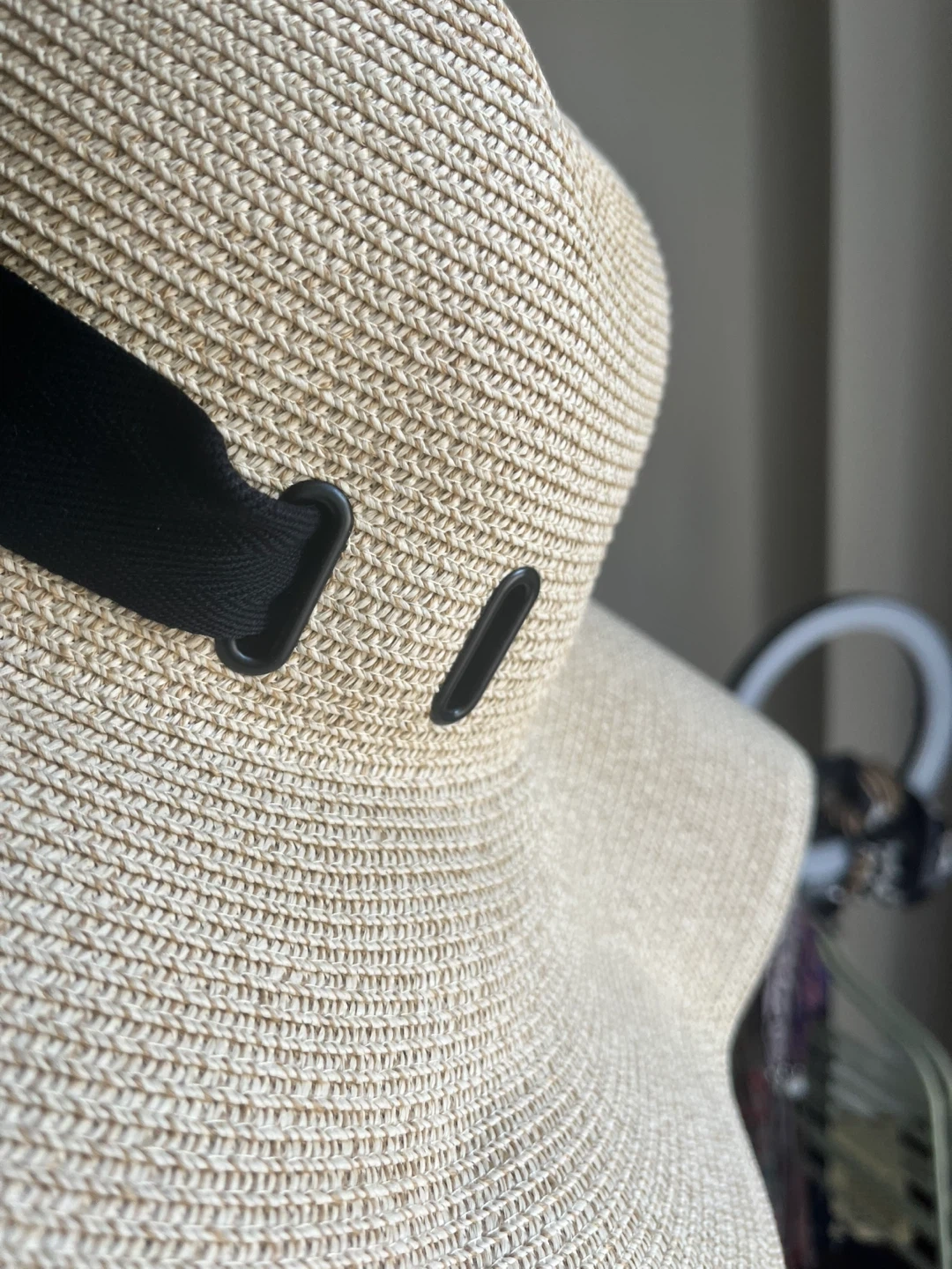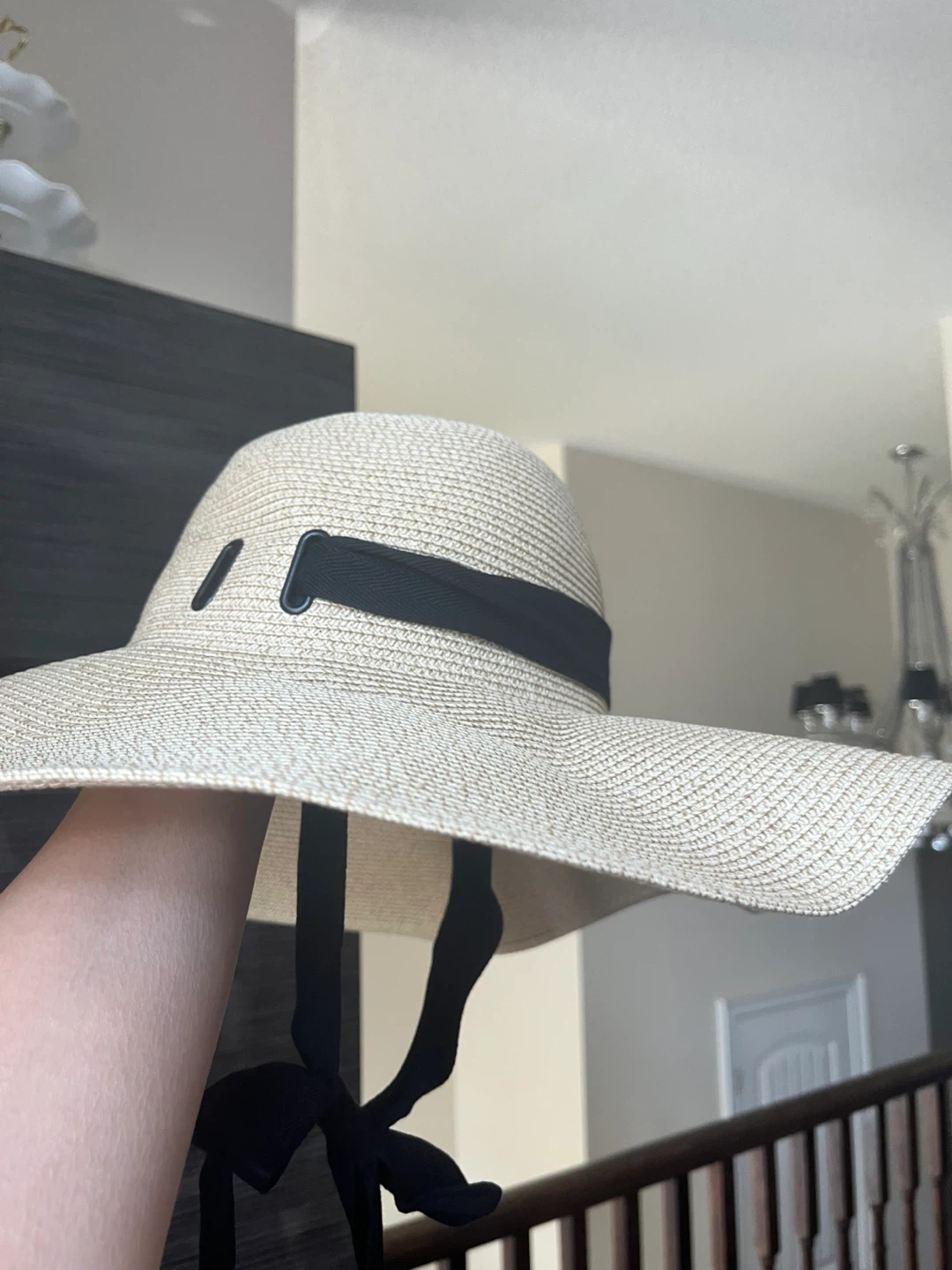 Stay stylish and protected from the sun with this lovely Hatiis sun hat! It's a beautiful beige colour with a chic black ribbon detail.