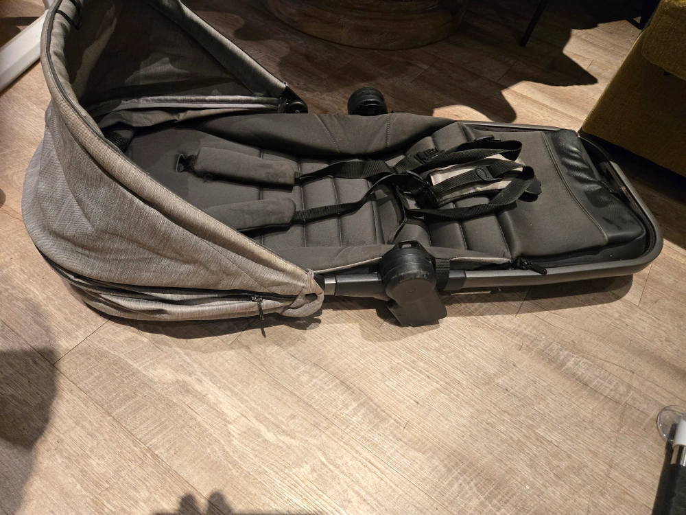 Selling a Peg Perego Ypsi stroller seat in grey. It's in great condition and ready for a new baby! This bassinet is perfect for walks or as a cozy sleeping spot at home. It easily attaches to the Peg Perego Ypsi stroller frame.