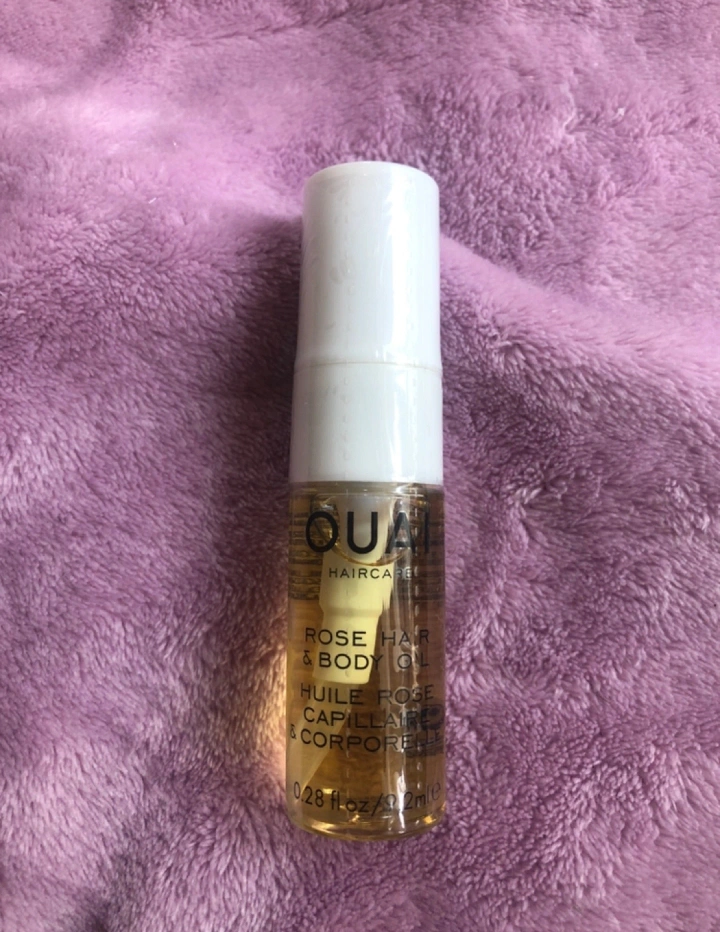 Selling a bottle of OUAI Rose Hair & Body Oil! It's the perfect size for travel or trying out a new product. This lightweight oil is great for adding shine and moisture to your hair and skin. It comes in a 0.28 fl oz (9.2ml) bottle.